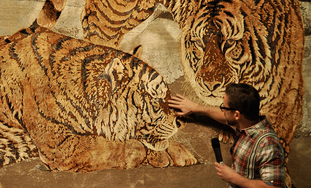 Petting the rug-tiger: Jürgen Dahlmann knows his treasures. Photo © Martina Metzner, Stylepark