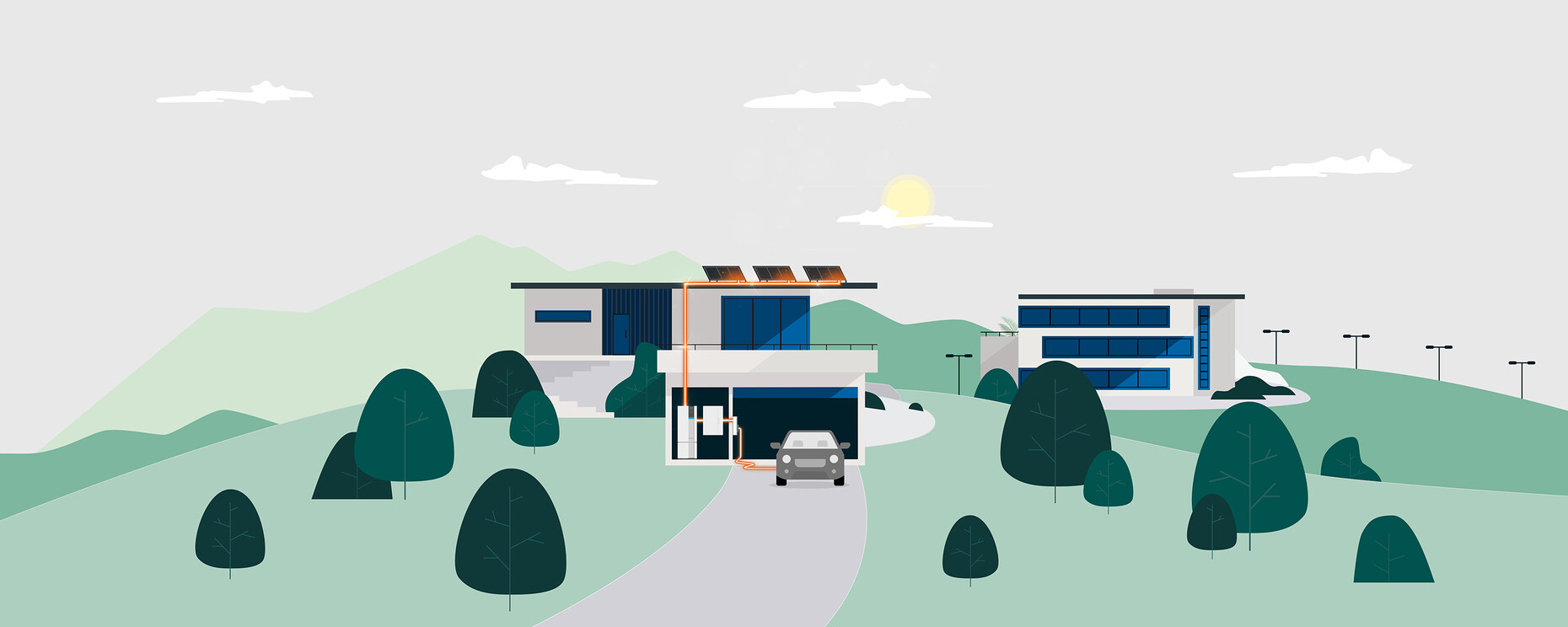 A good example of the use of "flow" is the Arnold House in Utting on Lake Ammersee. There, the Munich architect Sascha Arnold of Arnold/Werner Architekten designed a 200-square-metre low-energy house for himself and his family. The project is modelled on the 1958 home of the Japanese architect Kenzo Tange: the wide cantilevered flat aluminium hipped roof, which is laid over a wooden construction of glulam elements, serves as protection from the sun and the weather. A sustainable feature is the photovoltaic system, whose electricity yield is controlled with the help of "flow". The latter connects the solar system with the heat pump, the energy storage unit and the charging station to form an energy-efficient complete system. "I want a resource-saving house that lasts as long as possible, is as self-sufficient as possible and uses as many organic materials as possible. It's about getting the maximum sustainability out of it. Not only for us, but also for our clients, to whom we want to show what is possible using our house as an example," Sascha Arnold explains the concept for the building.