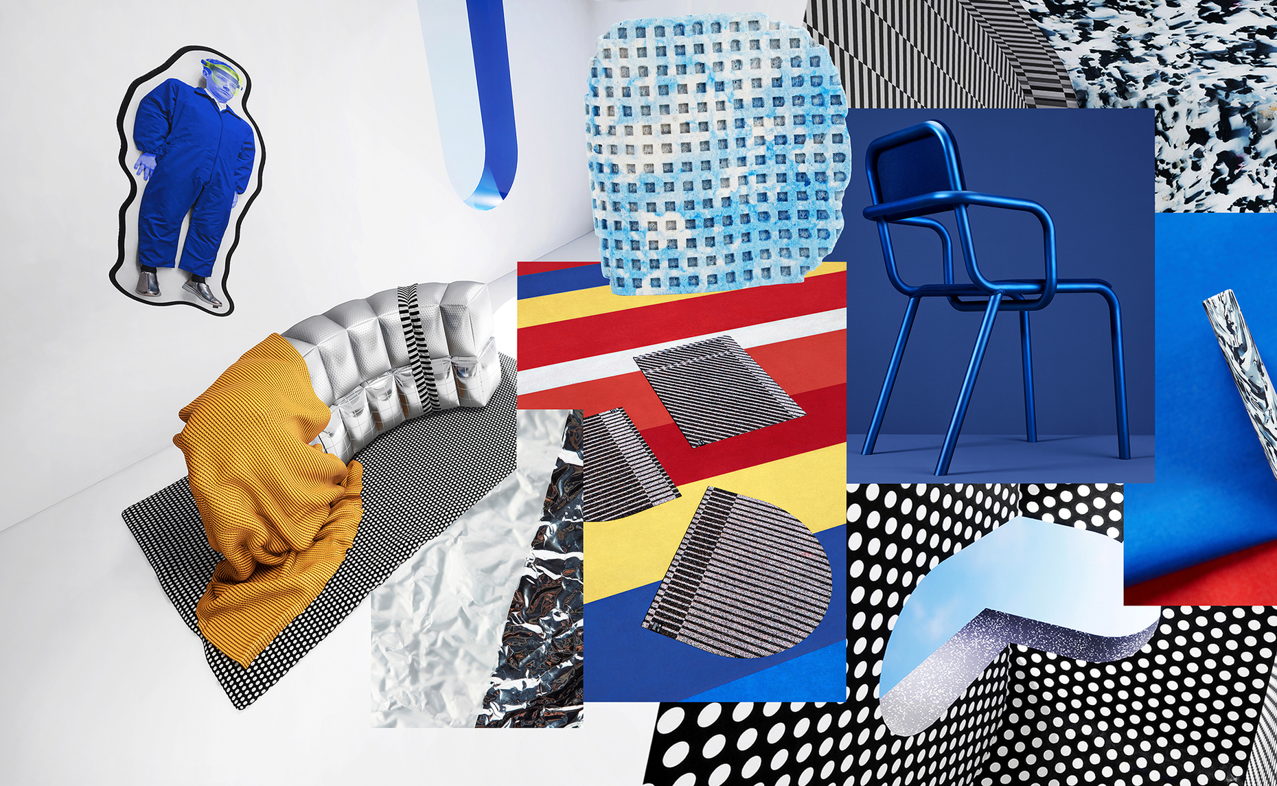 Expressive, eccentric, energetic: The 1990s are currently experiencing a revival. The longing for self-portrayal and intensive experiences is dynamically expressed using modern techniques. Bastian de Nennie scanned fabrics and combined the results to produce collages and assemblages. Textile art becomes performance art that blurs the divides between material and digital world. This hybrid space presents itself with bold ornamentation, deliberately contradictory, imperfect and futuristic.