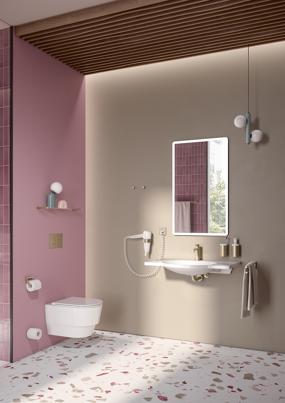 These are both decorative and robust: to ensure that users can enjoy the products for many years to come, the PVD surfaces are corrosion-resistant, easy to clean and scratch-proof. ‘HEWI products combine functionality and outstanding design with durability and sustainability, thereby creating added value,’ says HEWI Product Manager Florian Haude. As the versatile selection is also visually adapted to the metallic surfaces of leading fittings manufacturers, bathroom designs can be created without any discordant notes – a harmonious design that makes you feel good. HEWI's high-quality products are manufactured in Bad Arolsen, Hesse, where the company has its own PVD plant and has been investing continuously in modern, environmentally friendly production and flawless craftsmanship since its foundation in 1929. The design language, reduced to the essentials, is also reliable and reflects HEWI's sustainable and holistic design philosophy. (am)