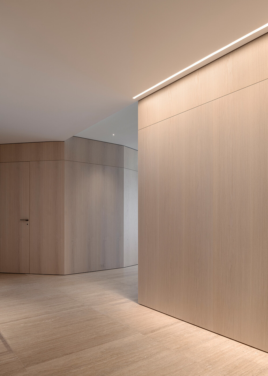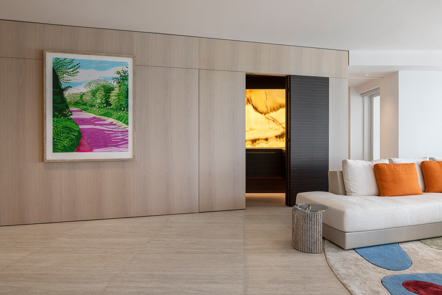 In Florida, Holzrausch was able to realize a first-rate interior design concept that the two Munich natives consider to be typical of their firm: “It is never our intention to design individual pieces that stand out. We want to create interiors that appear self-evident, that speak a clear, reduced design language.” As with many of Holzrausch’s interiors, in the apartment on Fisher Island large-format, high-precision paneling plays a key role. This breaks up the surfaces and structures the living areas, but at the same time brings together the different parts of the apartment in design terms. Most importantly, it hides all the storage space and utility areas that every apartment and every home needs, and this makes it possible to create the calm, unadorned appearance of the rooms that provides their residents with an ideal stage for favorite pieces and collectors’ items. “We view our fittings not as furniture, because the house should only be furnished once we have finished,” says Petri. “Our job is not to choose each cushion and every standard lamp. Rather, we aim to design and realize good interior architecture – with a good lighting concept, smart storage options, and beautiful and functional bathrooms – basically with everything that has to be permanently installed and mounted.” “Architectural furniture,” is how Holzrausch describes its own interior fittings – a term that is supposed to define the grey area that exists between the structure and the furniture. In the next step, the owners furnish their new home, often with the help of an interior designer. Sven Petzold believes this individualization is very important: “The perfection we strive for in our fittings is intended precisely to be broken up a little by furniture and artworks. When these are missing, you quickly get the impression you’re living in a hotel.”