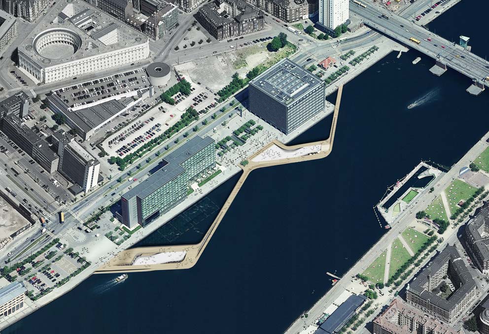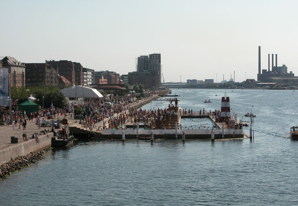Denmark’s JDS Architects are something like the specialists for public seawater swimming pools and have designed quite a few over the last decade or so. In 2003 they expanded the Harbour Park in Copenhagen’s Islands Brygge district so that it reached the waterside, and created the “Harbour Bath”, where you can swim, simply sunbathe, play, meet people, relax. Not just this bathing pool is typical of the general trend for the leisure-time and bathing culture to reconquer to cities and industrial brownfield areas. Other designs that JDS dreamed up but did not realize were the 2006 “Harbour Bath” for Aalborg, and the 2007 counterpart for Dublin’s Docklands. In 2013, the urban “Kalvebod Waves” was completed in Copenhagen’s Kalvebod Brygge, directly opposite the “Harbour Bath”. Where previously anonymous office buildings prevented any real public life, the Copenhagenites can now laze around in the sun on the “Waves” in the summer months, or use the artificial landscape of wooden and concrete runways to dive into the cool harbor waters.
