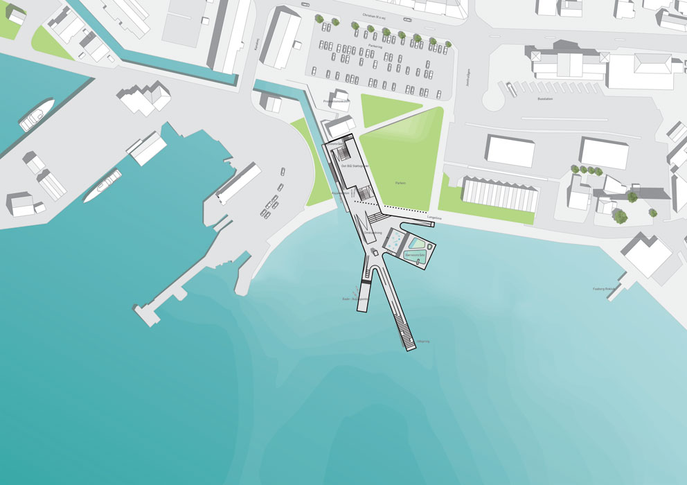 The “Faaborg Harbour Bath” at the southern tip of the Danish island of Funen, likewise designed by JDS, has just been commissioned, completing the company’s range of seawater swimming basins. It is based on the idea of combining an open swimming area in the sea with a set of piers that branch out seawards like so many fingers to form swimming areas in-between. In Faaborg the four piers leading out into the sea are of different lengths and breadths. Each of them offers waterside access, and each pool has its own purpose. The wooden piers are all made of decks, ramps and stairs. They house changing rooms, seating areas, small pools for the kids, a sauna and a meeting point for boating tourists. Maritime life, be it at the riverside, the harbor side or the seaside, has started to be linked more closely to urban life again.