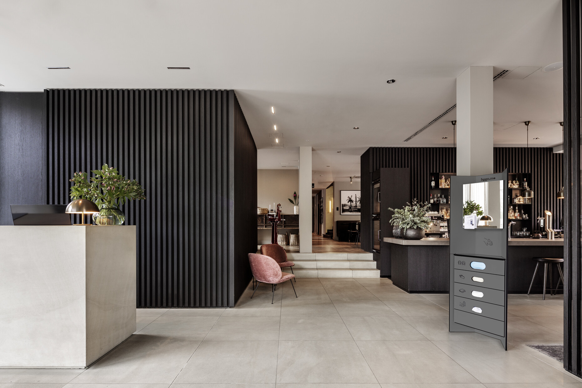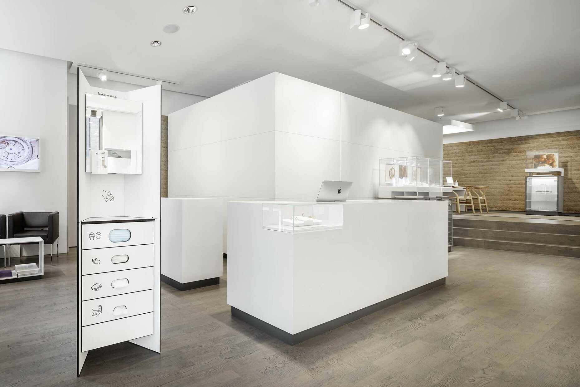 Even luxuriously appointed boutiques and carefully designed head offices have to pay the price for the presence of the Coronavirus. And it is not only hideous disinfectant dispensers, torn-open packages of disposable face masks, boxes of paper towels, and large rubbish bins that are currently teaming up uneasily with designer tables and custom-made reception desks, but so too are bottle deposit machines or the bread counter. Makeshift solutions have been hurriedly concocted in offices and stores in order to ensure compliance the new hygiene regulations and to make certain that staff and clients are afforded the best possible protection from infection. It is fairly safe to predict that at least some of these measures will not only be of a temporary nature. After all, the COVID-19 pandemic has shown us all too painfully just how rapidly a vicious virus can spread around the world today.