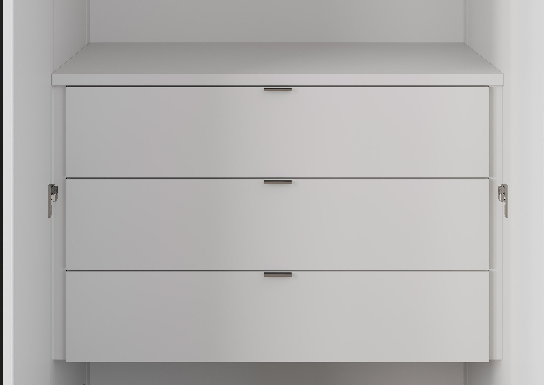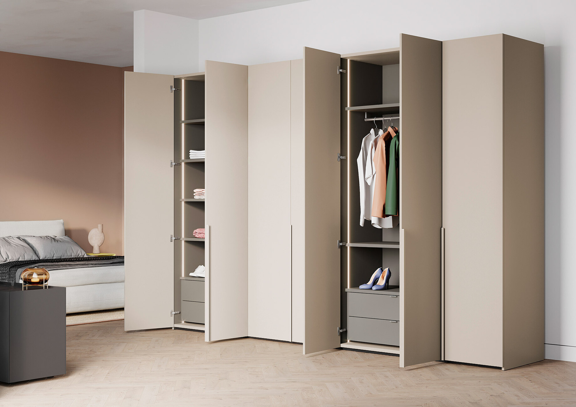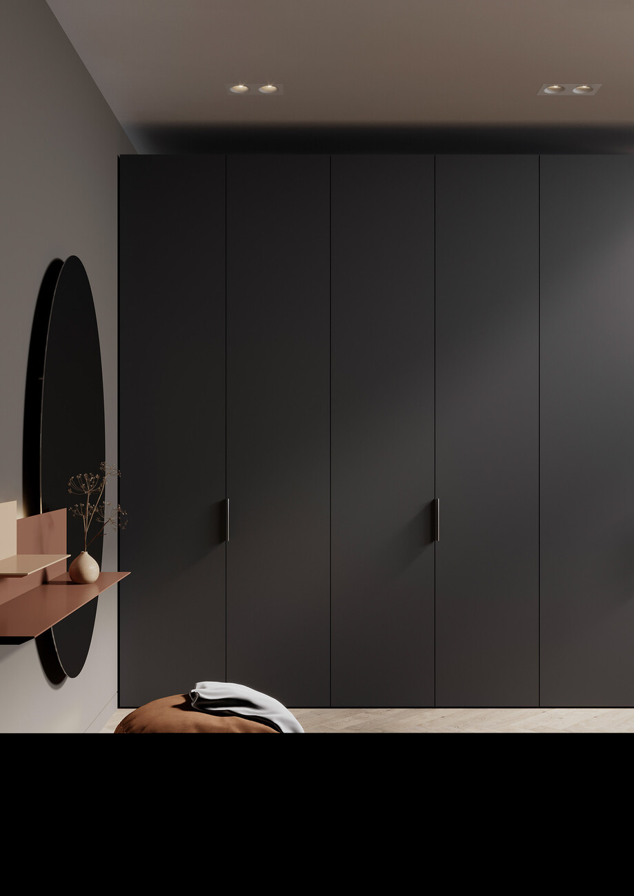 The "intaro" wardrobe system from interlübke is available in three heights, two widths and one depth and thus offers a variety of uses - from the hallway to the bedroom. The recessed plinth, which is only 2.5 centimetres high, gives the wardrobe a slightly floating look. The handles also offer freedom for your own ideas: There are three different variants to choose from, from the circular, diagonally attached "dot" from the design by Hanne Willmann, to L-shaped profile handles and the handle strip integrated into the front edge. Both the handles as well as the doors and exteriors can be lacquered in different or uniform shades, from classic snow white to rich burgundy to discreet metallic bronze. Clarity is the order of the day in the inside: one-piece back panels, invisible back panel fixings and perforated rails that offer flexibility in individual storage space design and avoid unsightly drill holes. Shelves, clothes rails, pull-out units and drawers can be easily fixed in the perforated rails and also easily moved or added to at a later time. (am)