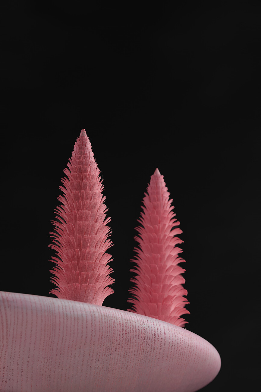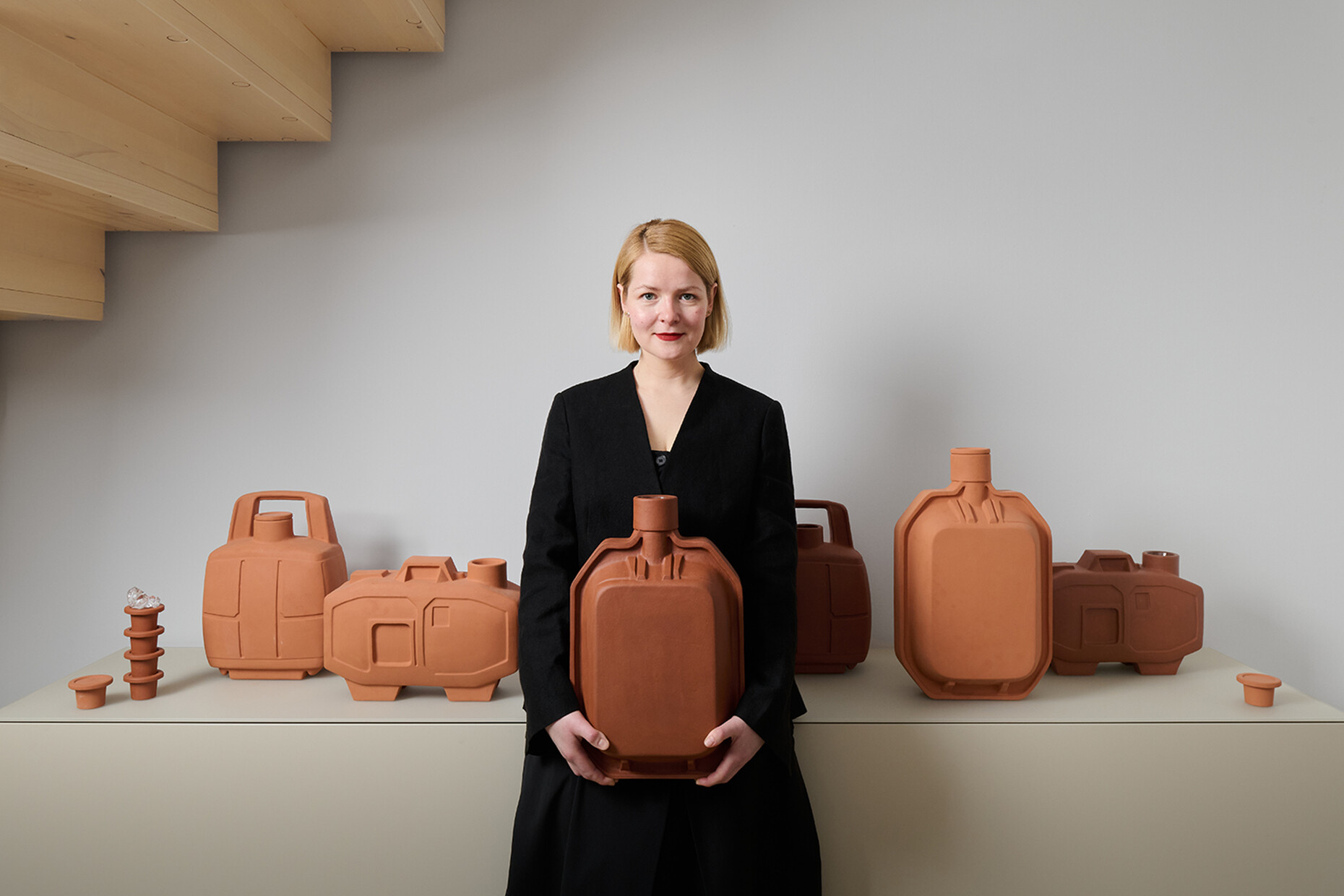 Johanna Seelemann: The MAKK Museum in Cologne invited me develop a project on the occasion of the exhibition "Between the Trees". While I already encountered the subject of timber production in previous projects, trees in the city take a special role, they are not part of the forest or timber production context. Research into the stress factors of urban trees revealed that clean water is the key factor for their health. This made it clear to me that I wanted to focus on irrigation. The "Oasis" objects are based on a historical watering technique that has been around for thousands of years and was used in ancient Greece, for example. Clay pots are buried and filled next to the trees, which gradually release the water to the tree. In this way, the water neither evaporates nor seeps away and is thus available to the tree. So the idea is old: I have taken the archetype and transferred it formally into a contemporary, technical language. The shapes look like fuel tanks and thus also tell of the urban competition between trees and cars. We made the clay pots in a small ceramics studio and will be exhibiting them at the Milan Furniture Fair. In the "Micrographia – Redesign for Biodiversity" exhibition, we will be showing two versions: Low-fired, it serves as an irrigation system and high-fired, as a simple vase. This is where duality comes into play: design intended for the plant, but also useful for people. And although it can be used practically, in the end it's also about the gesture.We currently have a small handmade collection.But I would like to scale up the project and make it marketable with an industrial partner.