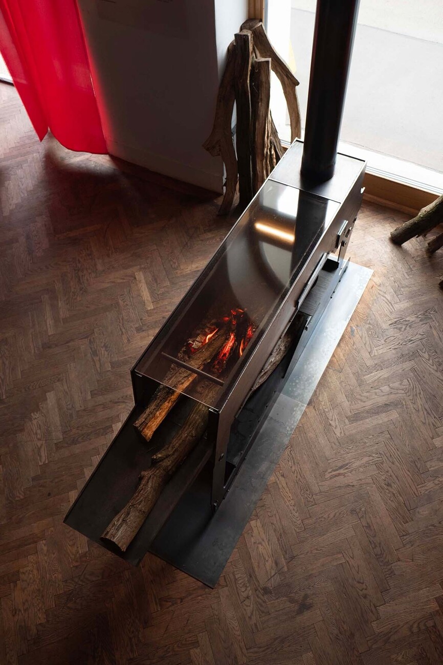Johanna Seelemann: For the Vienna Design Week, I was brought together with a local manufacturer, a stove builder, in the "Passionswege" format. That was extremely interesting because I was confronted with all my prejudices about stoves in terms of sustainability and burning wood. The Low-tech Magazine was one of the things that was relevant to me when I started looking at the topic of fire. I learnt that fire was historically used very differently to how we perceive it today. Today, domestic fires are mostly used decoratively to create a cosy atmosphere. But historically, the one fire in the household was used for all sorts of things, from cooking and heating to drying laundry and conserving food. They also cared about how to maintain a fire effectively. There were also different techniques for wood sources. Around a hundred years ago, probably forty per cent of the forests in Europe were coppice woods. The branches of fast-growing trees were harvested, not the entire tree felled, which in turn could grow new shoots more quickly. Of course, it is questionable whether this would even be possible on the scale we need today. But it still shows a different method of dealing with the raw material. These insights actually led to changing my perspective. And again: old knowledge! What did we actually know before and what have we forgotten? As we have reached a certain level of comfort, we are no longer dependent on certain knowledge, but this also means that a lot of valuable knowledge gets lost. The object that the stove builder and I then made was a stove in which we tried to change the way it works. Entire logs can be pushed into it, and the heat is regulated by how far the wood is pushed in – and you can cook on it.