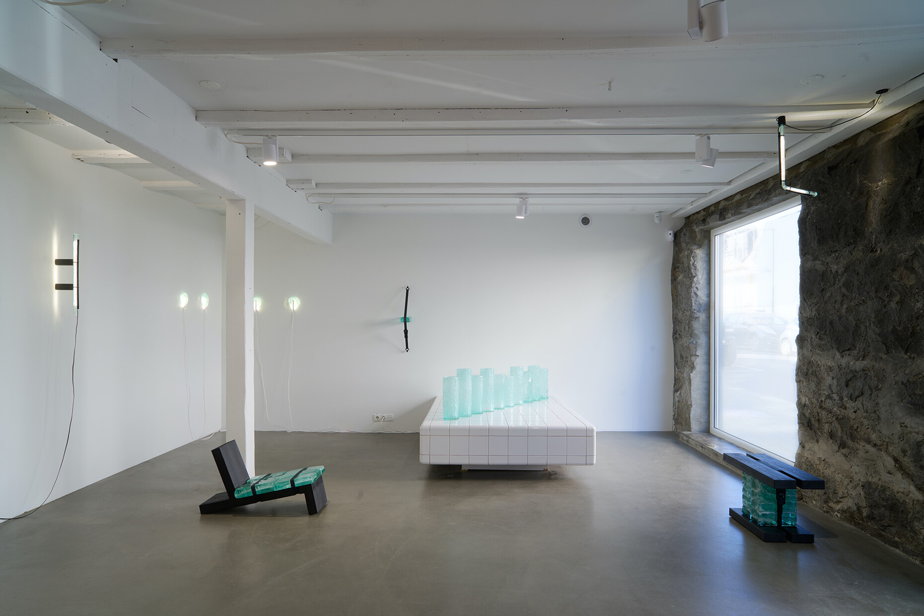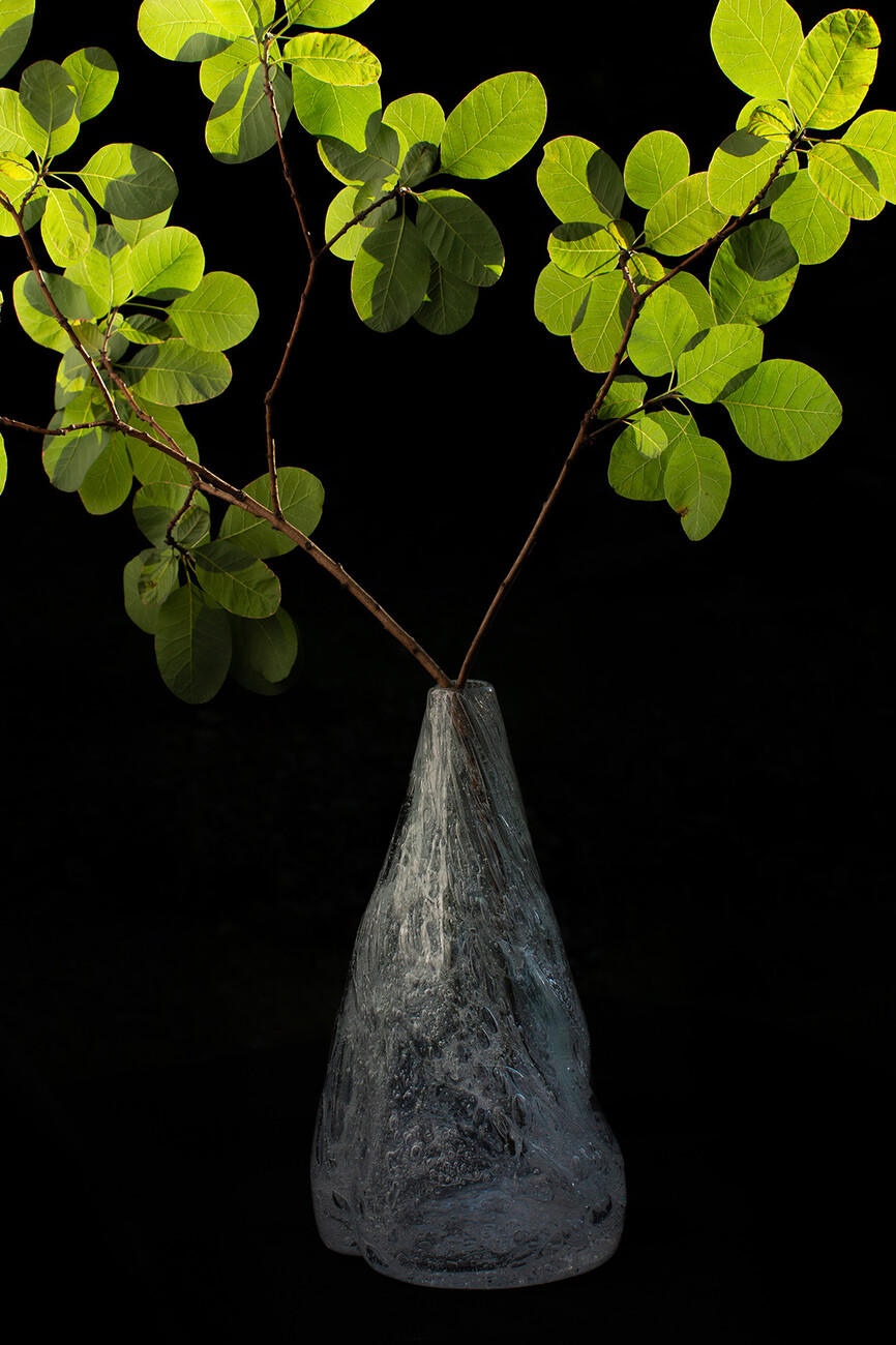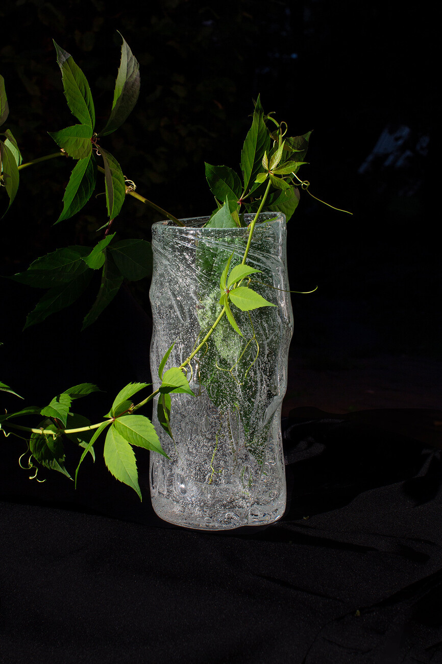 Johanna Seelemann: We wanted to explore recycled glass and were particularly interested in the expressive power of glass. The project revolves around the questions: When do we become attached to products? Is it perhaps the uniqueness of an object? How can you produce objects in series that are still unique pieces? We wanted to use air inclusions to produce unique pieces. It was exciting to work with the glassblower, for him it was of course very unusual to provoke uncontrolled air inclusions in an object. The opposite is normally the standard. We allowed a lot of air – and produced quite successful objects.