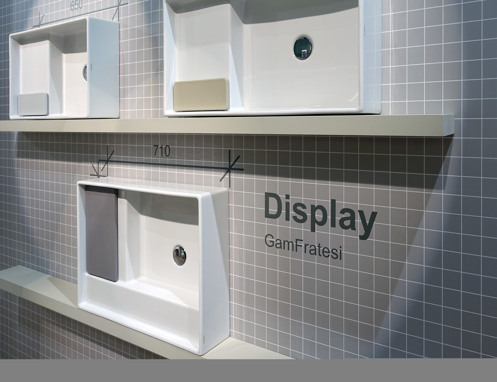 Finally, at the ISH it is not only the ever-dominant white that catches the eye, but also a large range of discreet beiges and greys, and a shot of extravagance in the form of bicolor versions: white on the inside, colored on the outside, completely black basins and toilets such as those by Pomp’Dor or VitrA Bathroom. And while mixer batteries increasingly eschew a high-chrome finish, the washbasins themselves are now gleaming all the more – be it Alape’s use of a metallic look or Roca’s golden leather version, masterminded by no less a person than Giorgio Armani.