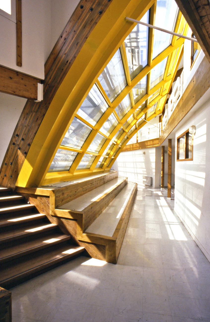 Iwona Buczkowska: Out of necessity. In the 1980s, the fire safety regulations demanded to the building be made of concrete due to its height. Today we could have built it with timber by using CLT panels. Originally, we proposed to make the floors and columns of concrete, while the facades and the roofs would have been in wood. But the client rejected the idea. I was very young. Maybe I wasn’t persistent enough.