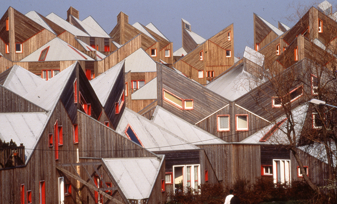 Iwona Buczkowska: To convince the city, we needed to demonstrate that timer housing could indeed easily be built on urban and industrial sites. For the generation that experienced World War II, wood was the symbol of cities of refugees, of slums and other poor provisional structures. We organized a visit to a small wooden housing project by Jaap Bakema which had just been completed outside Rotterdam. Then there was a vote in the municipal council: The older elected officials voted against, the young people in favor of the idea. The mayor considered that he was building for the younger generation, so wood was accepted. It was still necessary to build a prototype of five housing units and to organize an “open day” so that the local inhabitants could visit the interiors and accept them.