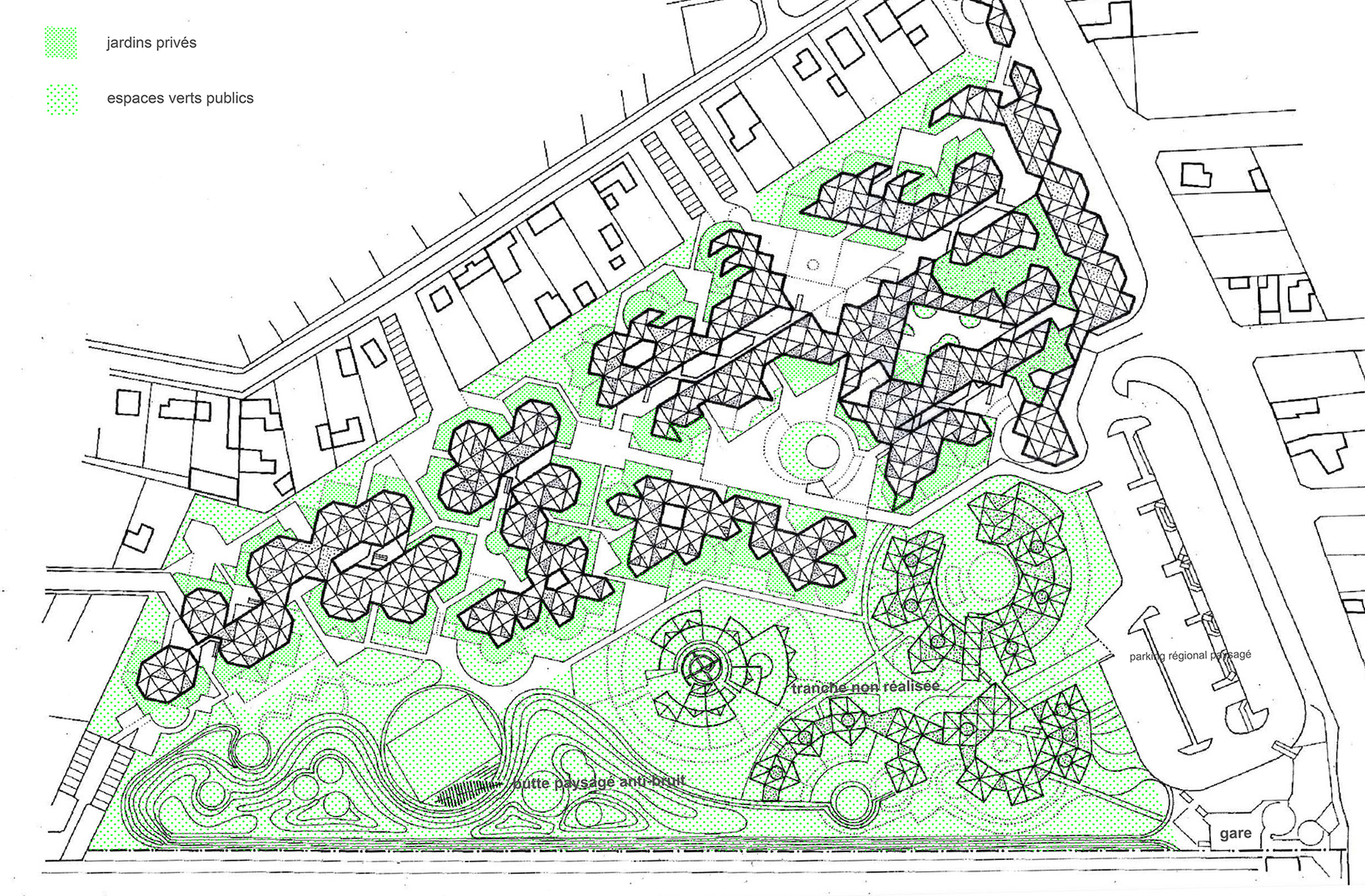 Iwona Buczkowska: I was very lucky. My graduation project was a housing complex across the street from the Basilica of Saint-Denis. I took inspiration from the basilica’s Gothic arches and flying buttresses, and structured my proposal around some vertical, concentric arches with apartments and offices plugged into the upper floors and snaking pedestrian passages at the ground level. For the final evaluation, Gailhoustet invited a deputy director of the social housing developer for that region, Jean-Pierre Lefebvre. He offered me a small project, to design 20 housing units on a site of abandoned orchards next to the train tracks in Le Blanc-Mesnil. In the wake of my first designs, the project grew to a dimension of 225 housing units.