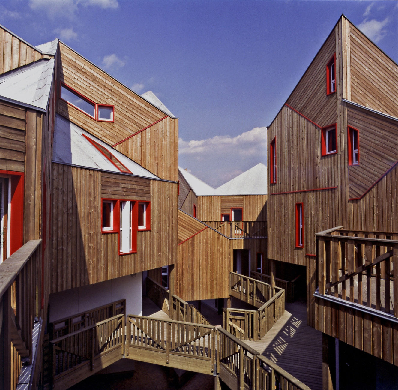 Looking at the many social housing projects in your portfolio, I would be interested in what you see as common features. It looks to me that you are repeatedly using elements like arches and blunt angles, and your preferred materials obviously are wood and fair-faced concrete. What are your main interests in your architecture, what do you try to achieve?