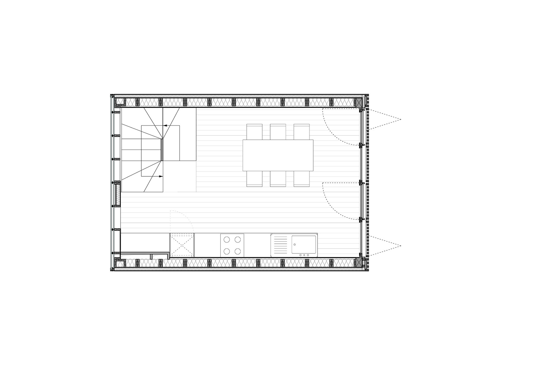 Inside, a compact staircase connects the individual floors. Its open wooden structure allows various views through, while soft daylight falling through the polycarbonate façade shines between the steps. The staircase and bathroom are arranged as a spatial layer on the back, while the rooms per floor open to the east towards the front building. In doing so, the architects reversed the classic layout by placing the first floor bedrooms up to the second floor. The eat-in kitchen is on the third floor and the living room is at the very top of the "greenhouse", surrounded by the open wooden structure. It is also the brightest and most open space, offering an unobstructed view of the surrounding urban fabric and exemplifying how spacious second-tier living can be.