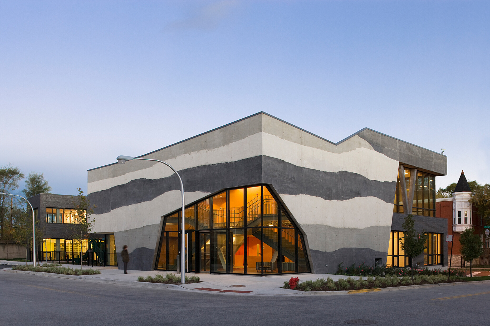Since its foundation, her office has grown continuously. Her husband, Mark Schendel, whom she met at OMA in Rotterdam, also works there as Managing Partner and is primarily responsible for office organisation. The Aqua Tower was followed by other skyscrapers, such as the gently curved Q Residences in Amsterdam, the twisted Mira in San Francisco and the 365 metre high Vista Tower in Chicago, with which Gang clearly beat her own record in 2011. Nevertheless, she manages to successfully avoid specialising in skyscrapers alone. The typological breadth of her portfolio is important to her. She has also been involved in community projects from the outset, such as the One Family Illinois Center in Chicago for poor families and their children in 2008, the simple conversion for the restoration workshops of the Conservation Center in Chicago in 2012 or the training centre for the fire brigade in Brooklyn, New York, in 2019. She and her team now also design entire urban districts, such as the transformation of an industrial site in San Francisco or the Enterprise Research Campus for her former university Harvard in Boston.
