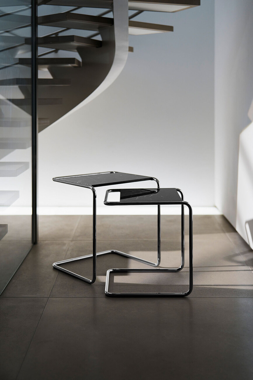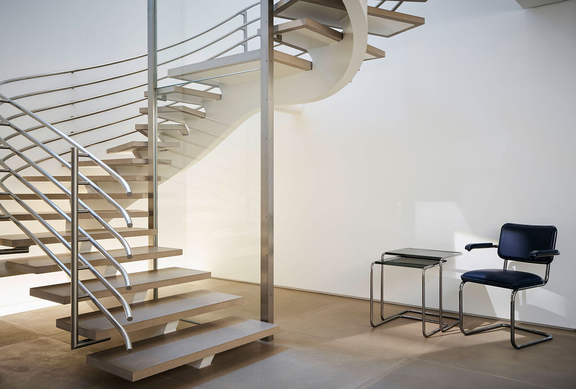 Jil Sander: My considerations began with the chrome frame, which I wanted to change because it strongly defines the Breuer original. When I found the glossy titanium metal alloy, it was clear that the colour of the leather had to be restrained. So I used dark shades of graphite. I also wanted the leather to have a matt and light texture.