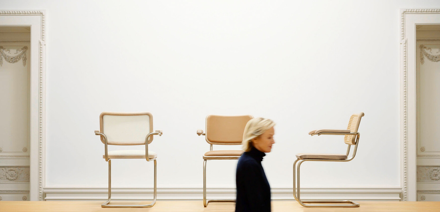 Jil Sander: At the beginning, it gave me a headache that I wasn't allowed to intervene in the shape of the Marcel Breuer cantilever chair. I had the chairs delivered and used the mood board to think about prints and colours. The ideas came quickly, that's what happens in my head. I didn't use sketches because they are only interesting for form variants, but the reinterpretation was a question of material and colour.