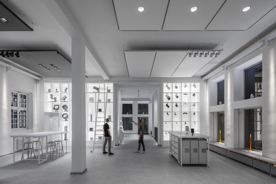The cooperation between the two companies serves as a guideline for planning: although each brand has its own clearly defined areas, the open-plan concept provides a platform for getting to know the products of both manufacturers in the combined interplay of light, building control and architecture. The showroom is thus intended to be an example of an integrative approach to planning, in which intelligent control and perception-oriented lighting complement each other. ‘Architectural lighting and building technology enter into a dialogue here that opens up new design possibilities. We see this place as a living forum that we would like to fill with workshops, events and special experiences in the future,’ says Frank Busch, Managing Director of Erco, about the concept.