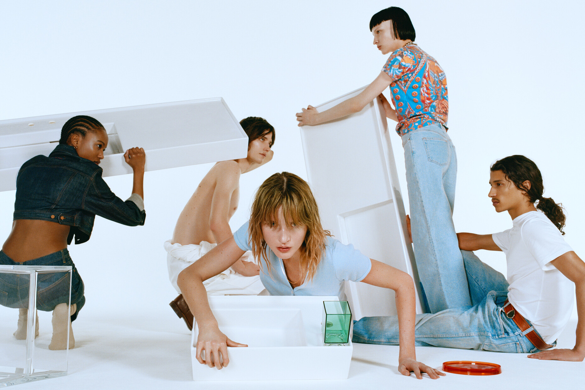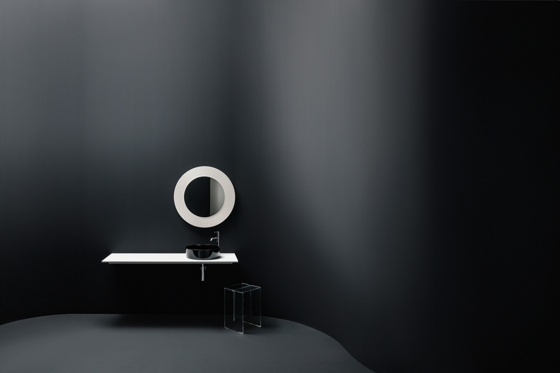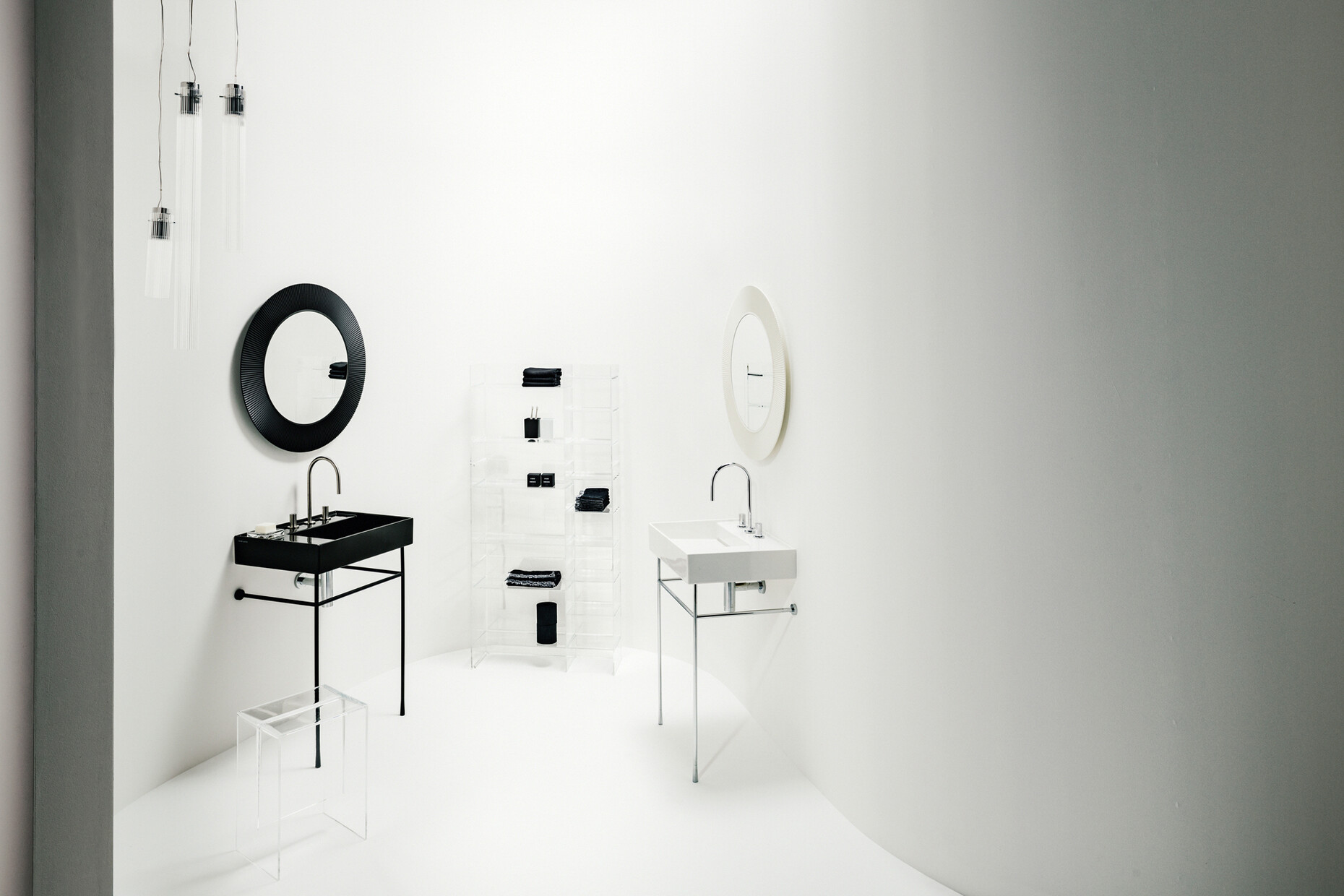 In order to display the full potential of “Kartell by Laufen”, Laufen and Kartell have collaborated with photographers Hugo Comte and Oliver Helbig, both of whom came up with their own, very personal ways of looking at the collection. The result is two stories that could not be more different. For his concept, Belgian fashion photographer Hugo Comte worked with models who took playful possession of the collection, making it part of an imaginary film which, by illustrating its young protagonists’ dynamic, impromptu movements, developed a pictorial language which had a subversive feel to it. German photographer Oliver Helbig’s story contrasts with Comte’s provocative expressivity with the meditative introspection it exhibits, presenting “Kartell by Laufen” in the context of thoughtfully staged still lifes. In Helbig’s minimalistic images the washstands, cabinets, mirrors, stools and shelves merge with the sweeping lines of the surrounding room. In this context, his abstract compositions show a poetic diversity that is the result of the interplay of geometry, colorfulness and light.