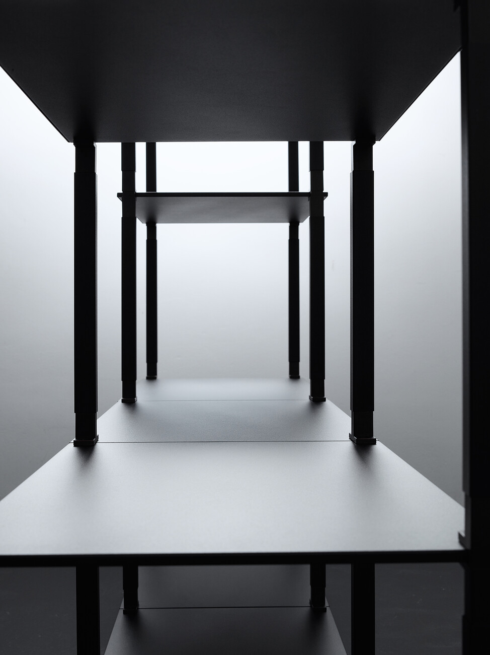 The system’s scratchproof sandwich shelves stand out both in terms of aesthetics and functionality: Bolted to each connector, they are exceedingly robust. “tRACK” has been reduced to the essentials, yet with its emphasis on strong details certainly succeeds in providing attractive accents in any setting. With its modular structure, the system can be used in a range of ways, including as a partition or sideboard, and can be expanded as needed. “tRACK” is based on Kesseböhmer’s approach to traditional craft: Since 1954, the metal construction specialist from Bad Essen has been establishing its reputation on an international market by constructing models, molds and tools. The range of possibilities for combining “tRACK”, as well as measurements and information can be accessed digitally via an app, which Kesseböhmer offers for download free of charge. At imm cologne 2019 the new shelving system was selected for “choices presented by Stylepark,” as well as being awarded the Iconic Award 2019.