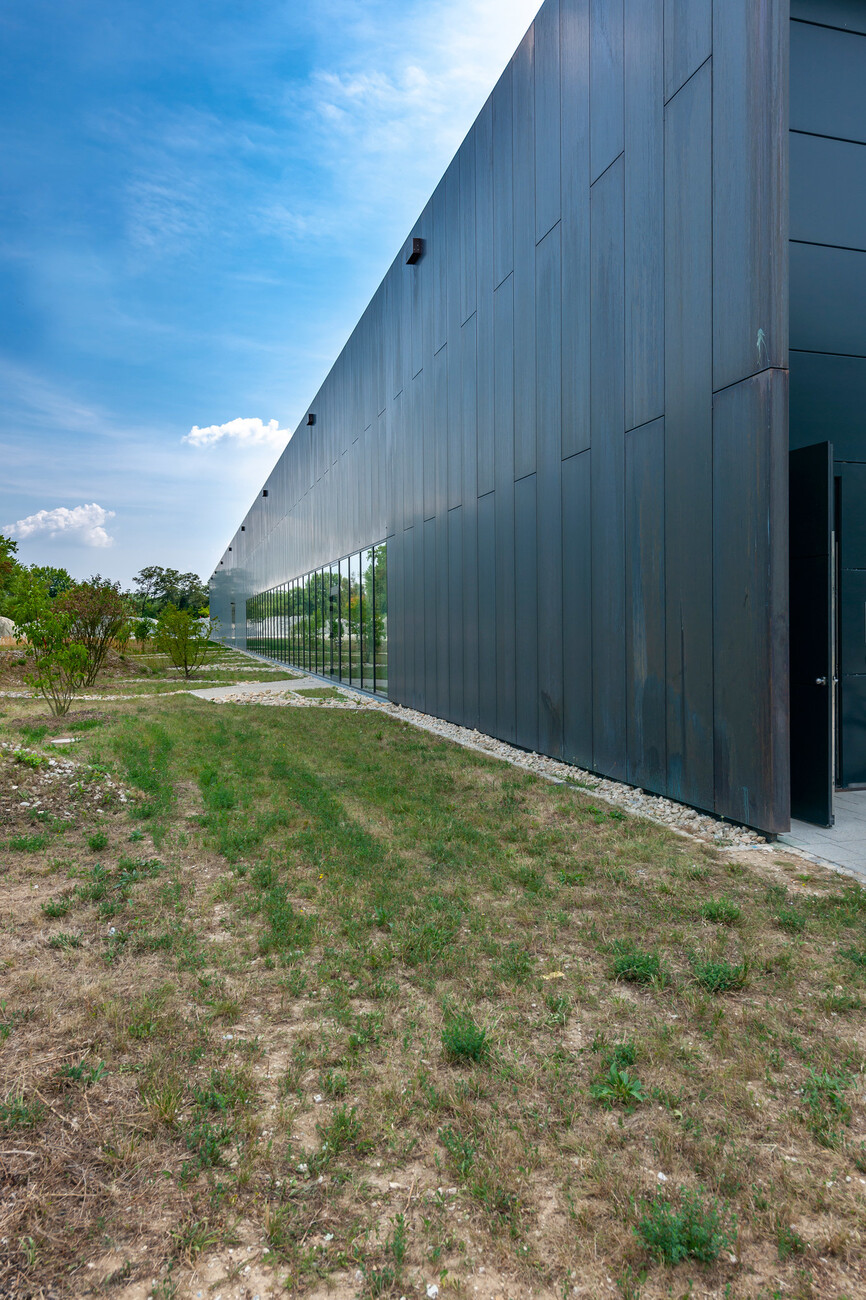 The material for the façade was supplied by Osnabrück-based copper façade specialist KME. It is an innovative product known as “TECU Bond,” in which very thin sheets of copper are stuck to both sides of a core containing plastic and mineral components. “TECU Bond” is ideal for cladding large expanses of façade quickly and economically. For “Carissma,” the architects and client chose a version called “TECU Oxid” where the copper is pre-oxidized, meaning that from the start it has a matte brownish tone rather than being shiny and reddish gold. Naturally, over the course of time “TECU Oxid” also develops a distinct patina.