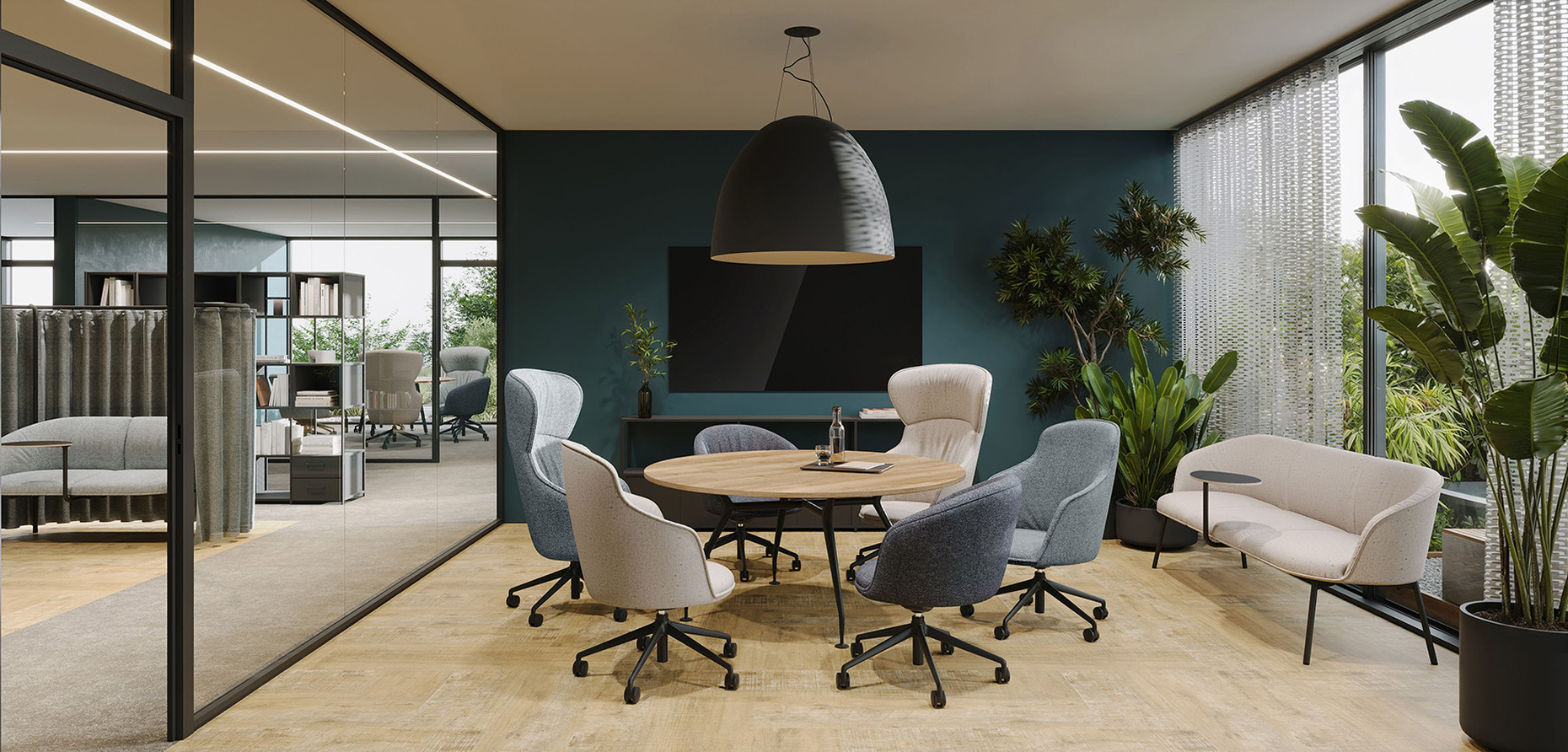In addition to functionality, emotion is also important for successful office furnishings – carefully designed working environments that promote well-being and thus also productivity. With ‘Net.Work.Place Wave’, König + Neurath offers a modular system whose elements can be combined as desired. These include comfortable upholstered benches, stools, armchairs in various heights, storage surfaces, cushions and acoustically effective curtains. As the perfect basis for communication and relaxation, these reduce noise levels and create a homely atmosphere. For individual furnishings, the family-owned company offers a wide range of components that can be adapted to individual requirements in numerous colours and fabric qualities.