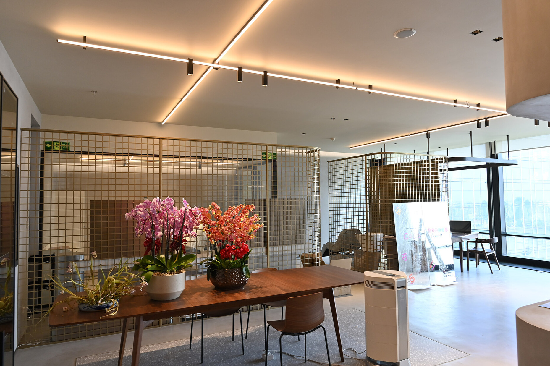 "Kagi" in Japanese means something like key. But the name also stands for the new lighting system from Kreon and indeed the profile of the luminaire is reminiscent of the three-dimensional shape of a keyhole, which can be attached to the ceiling as a light strip. Here, "Kreon Kagi" combines various accent lighting with linear illumination, as round or square downlights and wallwashers can be mounted along the entire length of the base profile. The 24 V base profile can be either recessed or surface mounted. In addition, it can be optionally equipped with satin-finished, linear LED light tubes with a diameter of 16 millimeters or 26 millimeters for permanently soft light distribution. An additional connection also allows the second level of the 24 V profile to be connected vertically at an angle of 90 degrees. The resulting flexibility makes "Kreon Kagi" a creative lighting tool that architects and lighting designers can use to play with spaces in a variety of ways.