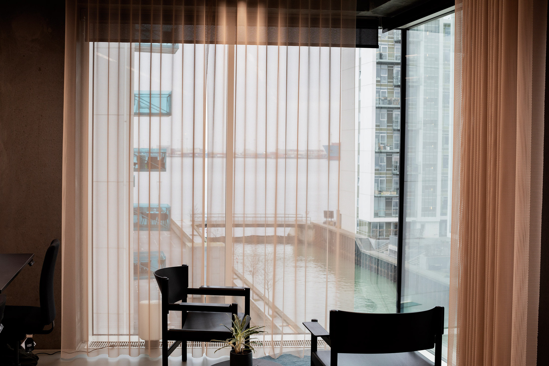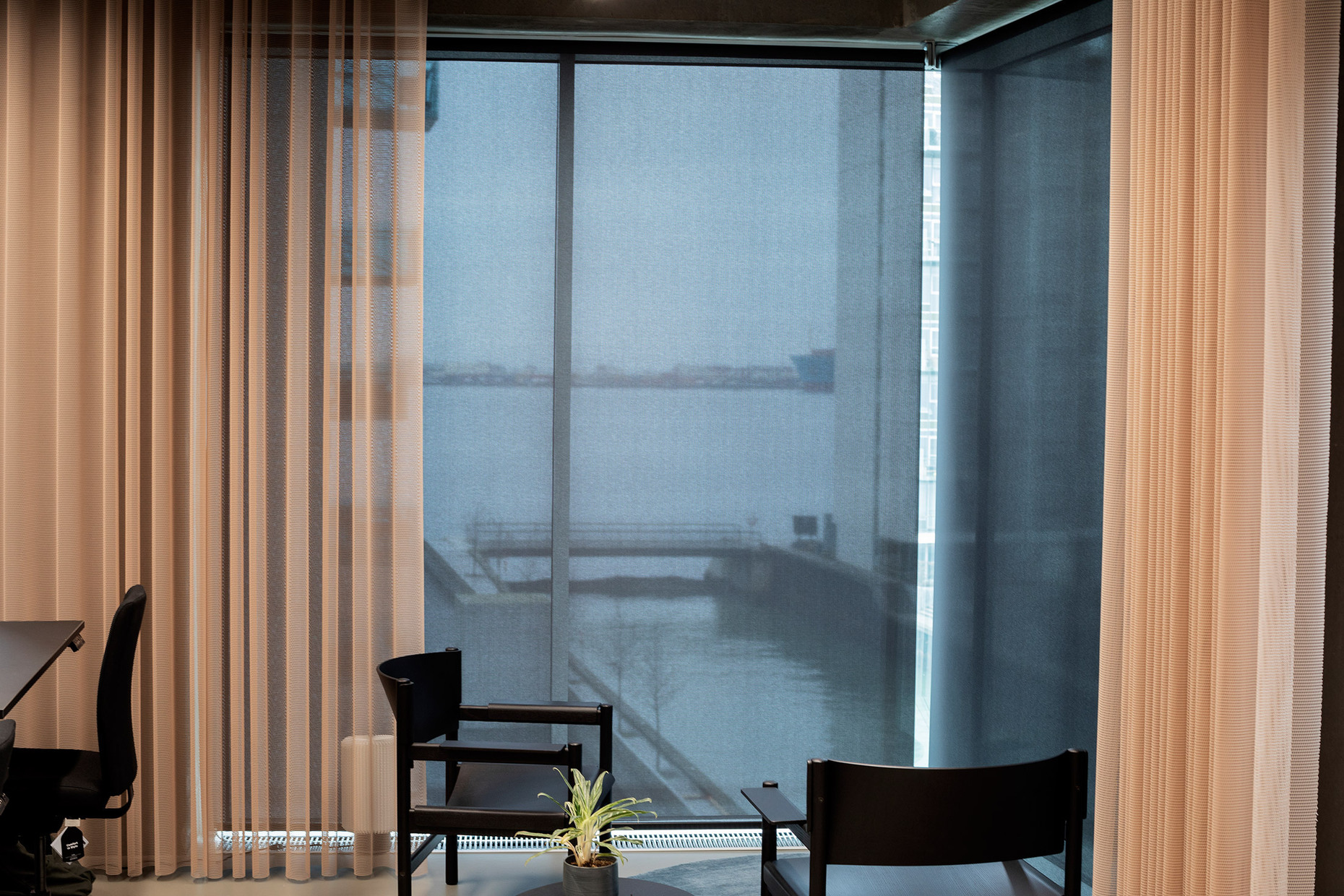 Working flexibly in an office-cum-hotel – it was on the basis of this philosophy that Companyons opened "Fellow", a co-working space, in 2020. Here, startups, companies and freelancers can rent fully equipped offices, flexible workplaces or meeting rooms, depending on their requirements. The offices’ location in Aarhus harbor represents another plus point, because the glazed façade allows users to enjoy a full panorama view out over the water. In order to strike a balance between the view and the homelike atmosphere Companyons has opted for roller-blind solutions by Kvadrat Shade.