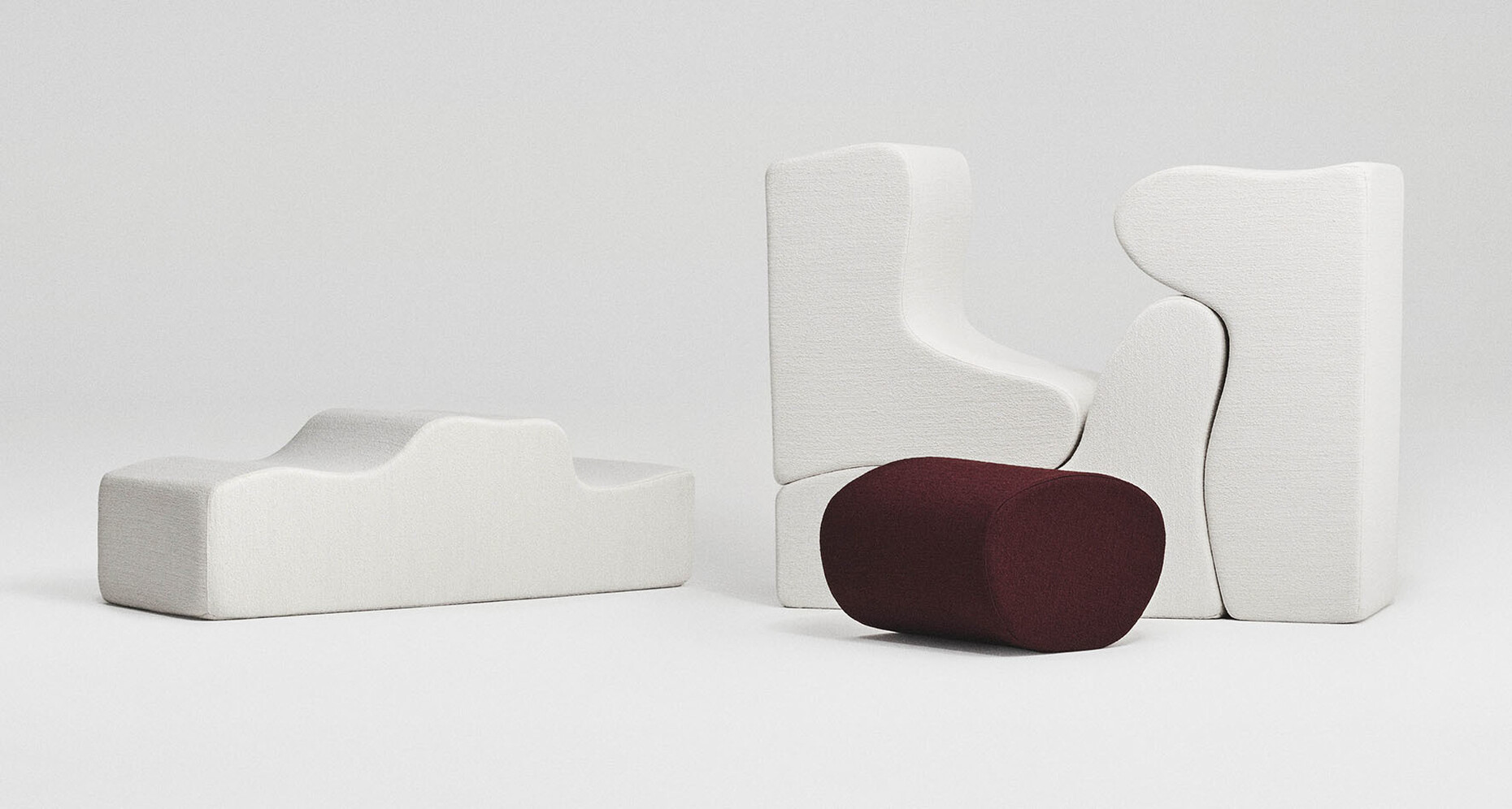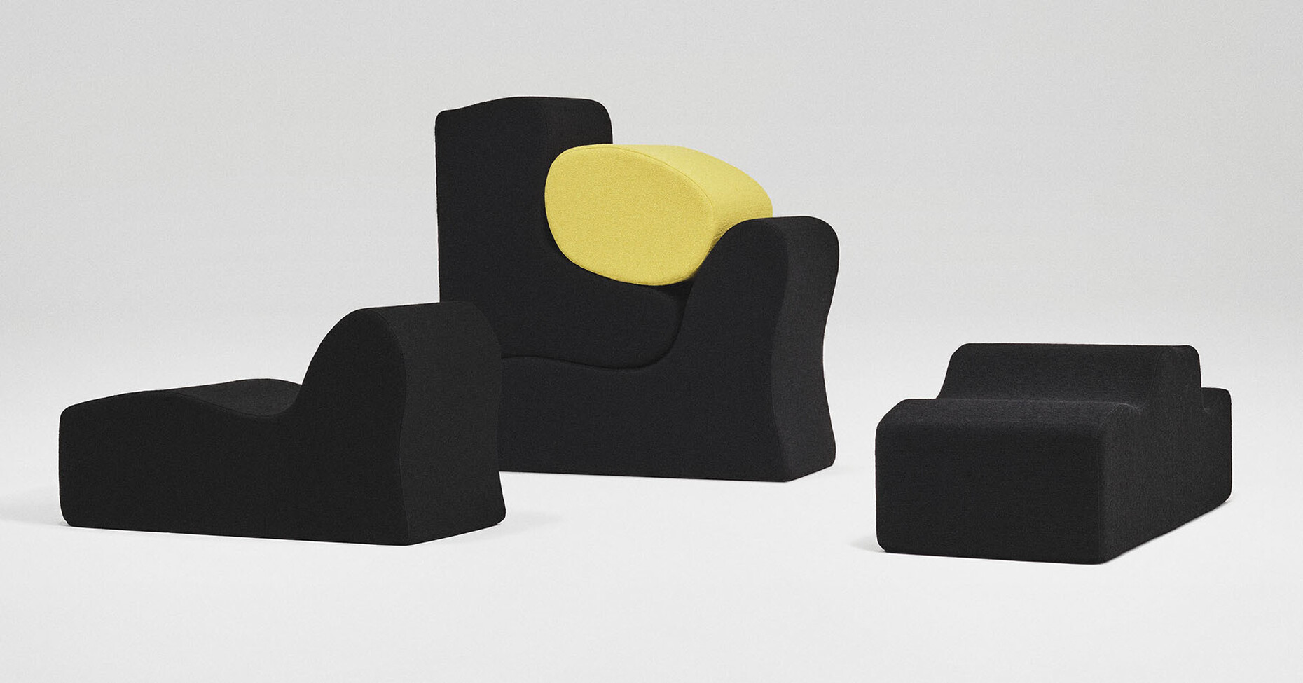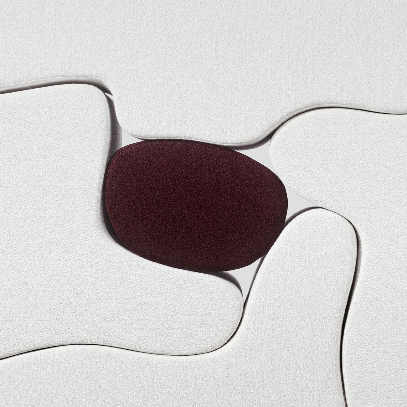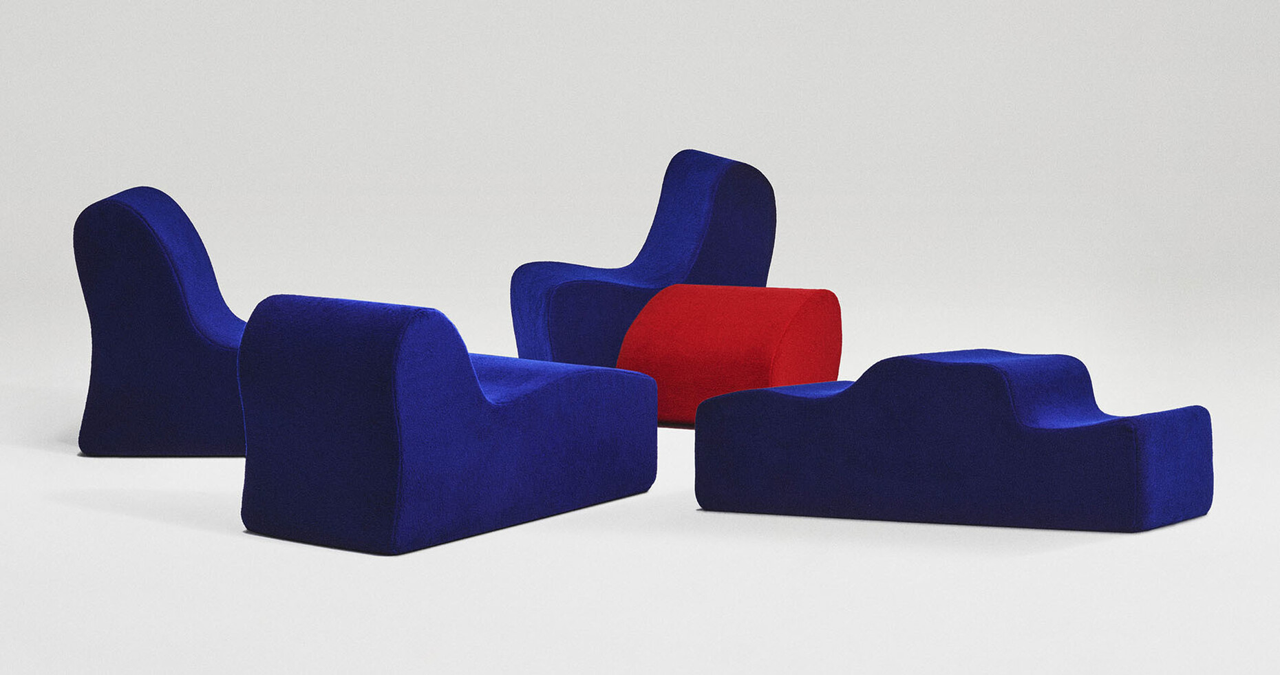 By contrast, “Silas” is inspired by the knits used in haute couture that give an exceptional volume. The velvet structure of the fabric is achieved by repeatedly unraveling and beating the fibers to make them swell. The subsequent steaming treatment makes for a soft, rich finish. The matt color spectrum ranges from shades of gold via neutral colors through to stronger hues. Thanks to the slight variations in pile height the fabric takes on a different appearance depending on your viewing angle. Those looking to experience the extraordinary feel and structure of this fabrics will find them as covers for the Malitte Seating System, which Roberto Matta designed in the 1960s and that Italian label Paradisoterrestre has now reissued.