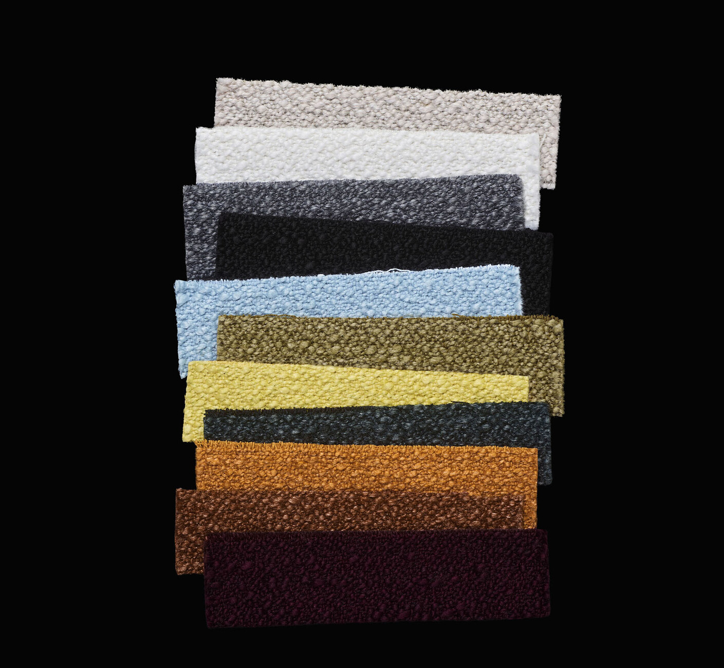 For his current collection for Kvadrat industrial and fashion designer Raf Simons sought inspiration in the textiles and techniques used in haute couture, for example in processing materials such as lambskin and sheepskin. The results are characterized by a strong structure and are agreeably soft to the touch: In “Helia”, swirls and whorls create a dynamic surface. Every thread was dyed prior to weaving to produce an arbitrary-looking pattern and a delicate blend of color. Aside from neutral shades it also comes in more intensive colors examples being blue and yellow.