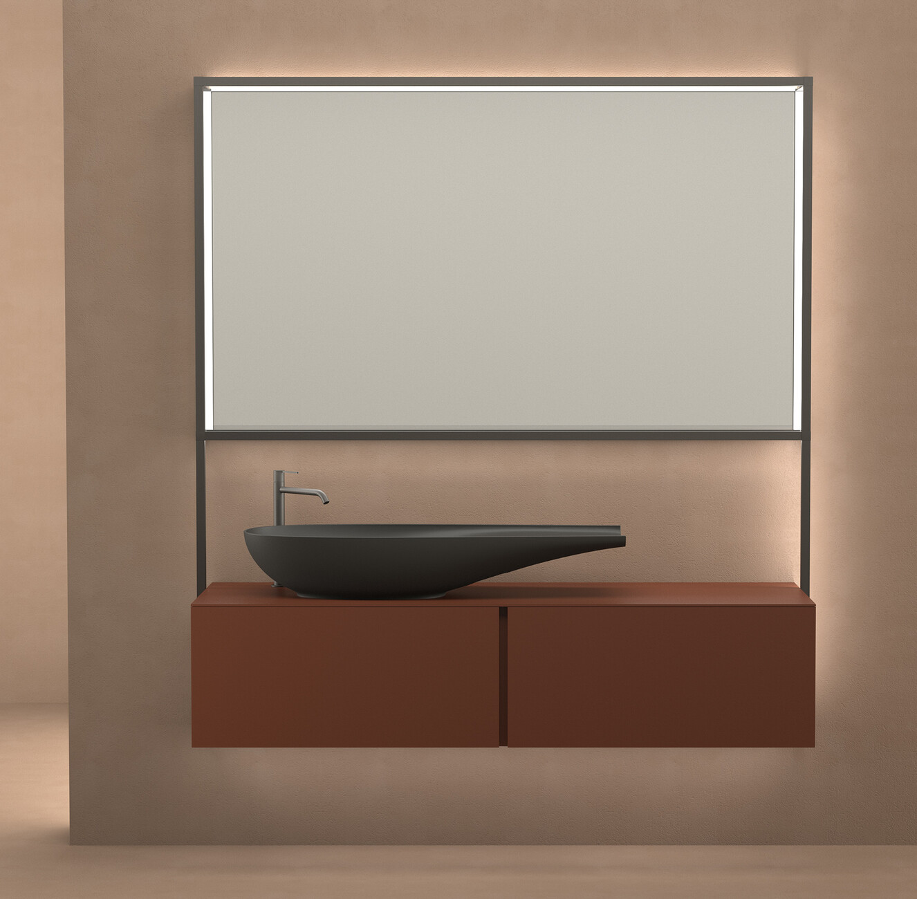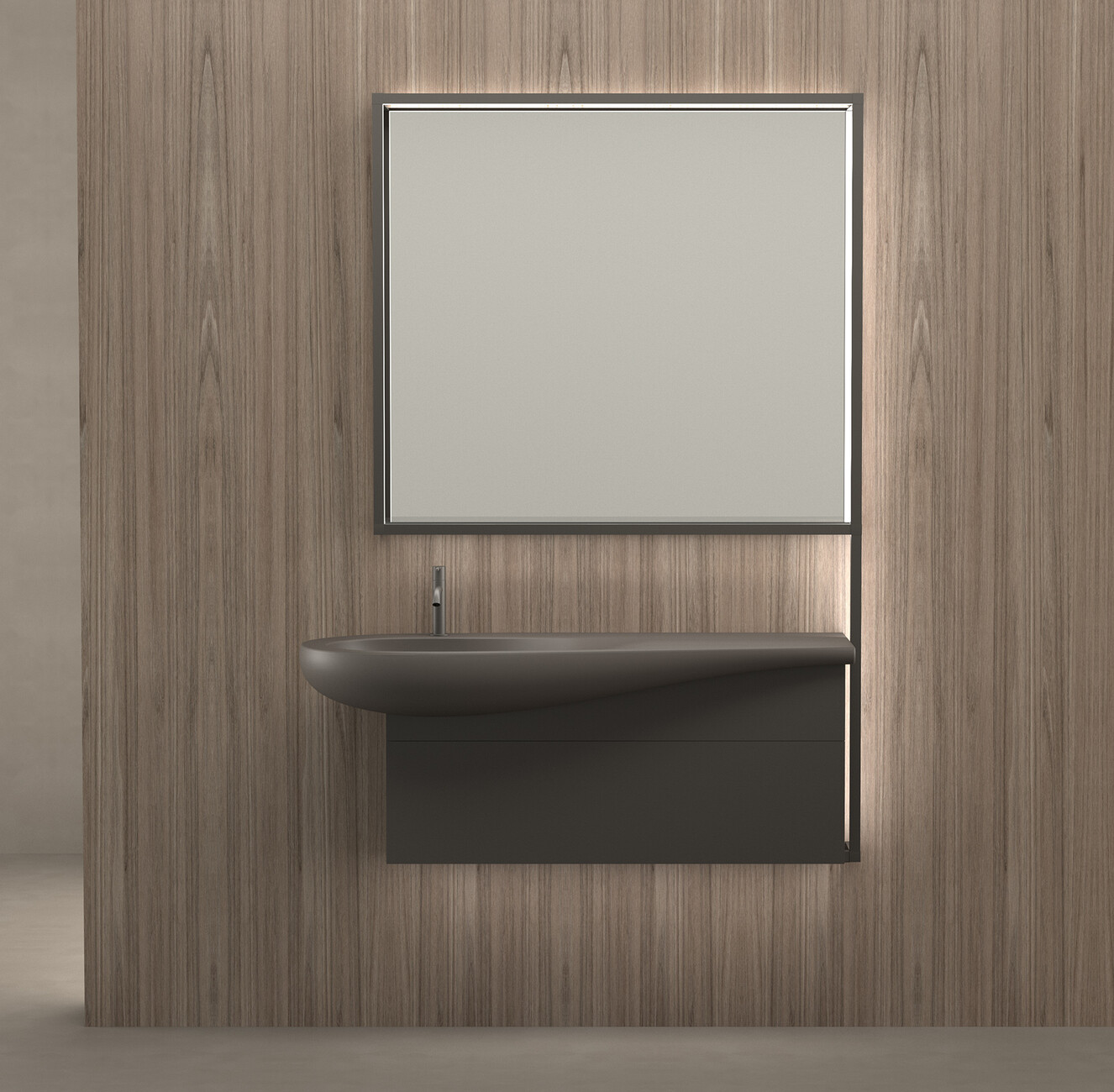 The bathtub is now made in Sentec, a cast mineral material, to echo the lines of the sink in its inner contours. For more comfort the thin internal surface improves its thickness where on the headrest a polyurethane cushion is placed. Moreover, three new finishes and colour variants are introduced for all the ceramics that add a new character to the products, expanding them to toilets and bidets with the matt finishes in white, black and coffee colour in order take on a more topical value. Evidence of Laufen's interdisciplinary crafts prowess is also visible in the form of the wooden bathroom furniture, such as the vanity unit, which makes a perfect frame for the sensual shape of “ILBAGNOALESSI" while creating an intriguing contrast. The furniture of the further development of "ILBAGNOALESSI" is completely new, due to the utilization of recently launched materials with an innovative opening system that is very functional thanks to a handle obtained through a 45 degrees cut on the sides of the drawer. "New materials such as wood, laminate, ceramic tops and earthy paintings applied to the furniture allow to play with the new ceramics colours creating very sophisticated chromatisms", says Stefano Giovannoni. A crowning touch is the new possibility to set the scene for "ILBAGNOALESSI": The frame structure, aluminium profile with a burnished colour that contains a led line, allows to direct the light creating diffused effects on the walls giving the possibility for different sceneries with a remote-control light management system – from spot lighting to the illumination of wide areas.