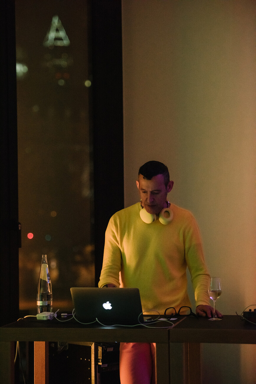 It goes without saying that the numerous invited architects, interior designers, journalists, and designers were extremely curious to take a look inside the tower, where the interior fittings have just been completed. And as such there was huge demand for the tours of the high-rise and the show apartment that Laufen and the real-estate developer Tishman Speyer were offering, until late in the evening. At another Tishman Speyer project, the neighboring Taunusturm, there was champagne, truffle pasta, exquisite fish, not to mention another famous party guest behind the turntables, waiting for the guests: the dazzling New York designer Karim Rashid. Clad in bright yellow and pink, he said in his short welcome address that he has been a DJ far longer than a designer, and then proceeded to lay down some beats for the evening.