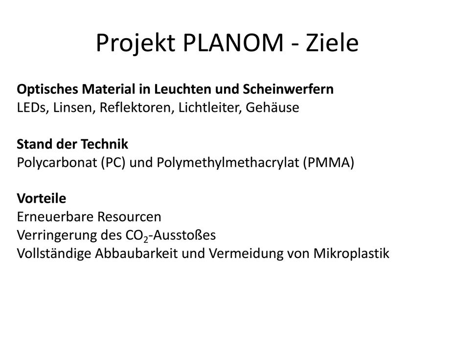 An environmentally friendly plastic for optical applications: Headlights, lenses, reflectors, and light conductors could all be produced more sustainably in future thanks to the new development. Scientists at the University of Paderborn, the Hamm-Lippstadt University of Applied Sciences, and the Aachen-Maastricht Institute for Biobased Materials are currently busy researching environmentally-friendly plastic products made on a lactic acid basis. The aim is to offer an alternative to the petroleum-based plastic that is currently still the norm. “Unfortunately, sustainability is not yet a purchase argument for consumers. They expect it, of course, but are not willing to pay for it. That’s why we need sustainable, high-performance polymers whose technical properties are affordable. And this is where we come in with the PLANOM project,” says Prof. Gunnar Seide of Maastricht University. Polylactide, or polylactic acid, could offer a crucial advantage here: The material is entirely biodegradable but has very good application properties in the visible range of the electromagnetic spectrum, and can be produced in large volumes in a way that is both environmentally friendly and cost-effective: “Polylactide or polylactic acid is obtained from renewable raw materials and is produced during the fermentation of carbohydrates via so-called lactic acid fermentation. That’s something we’re familiar with from sauerkraut, for example,” explains Prof. Klaus Huber of Paderborn University’s Chemistry Department.
