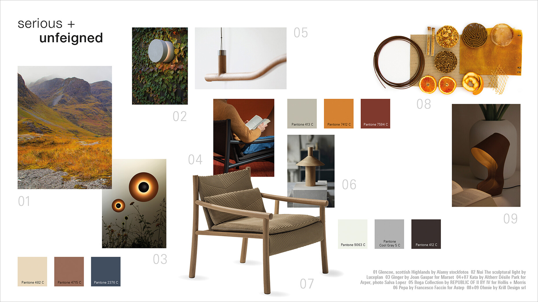The second trend, “serious + unfeigned”, is all about issues of flexibility, sustainability and materials research. The spectrum we are talking about ranges from lampshades made of fruit fibers to cordless luminaires. The colors on offer here have a natural feel to them – shades boasting the aesthetics of earthenware and minerals. “A potpourri of products that explore the fluid boundaries between inside and outside, in the process demonstrating how patios, balconies and gardens are increasingly being transformed into additional living spaces,” explains Palmisano. A holistic design that takes account of the lifecycle of the products right from the manufacturing stage. The focus is also on the naturalness of the colors used. Their understated, warm qualities allow the luminaires to fit in harmoniously with any environment.