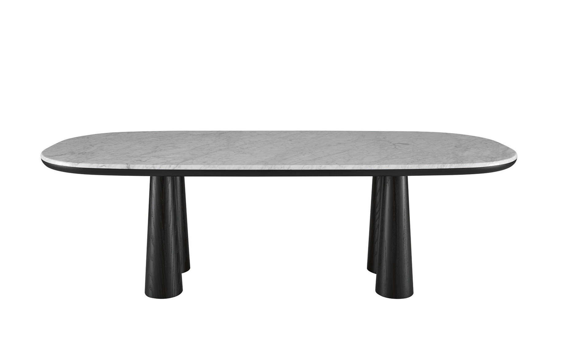 Although made of solid materials, "Hashira" does not look massive, because designer Alain Gilles knows the effect of cleverly placed contrasts: the rounded edges of the tabletop and the narrow table legs that taper upwards give "Hashira" an exceptionally gentle character and a high recognition value. In addition, "Hashira" is available in different versions: made entirely of one wood or combined from two types of wood, as a version with a top made of American walnut and legs made of black ash or refined with a table top made of white marble. With possible dimensions of 250 x 110 x 75 centimetres as well as 300 x 218 x 75 centimetres, "Hashira" by Alain Gilles for Ligne Roset offers plenty of space for many guests, for meetings with colleagues or for solo work. (am)