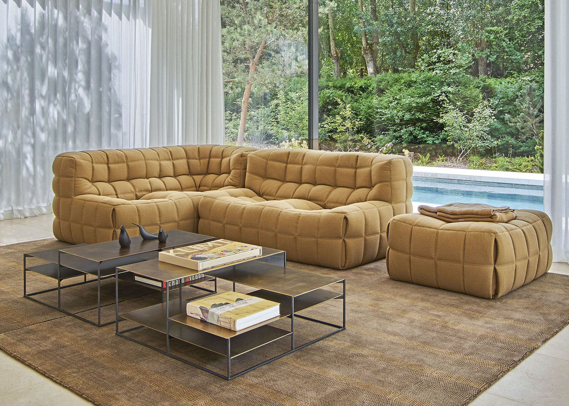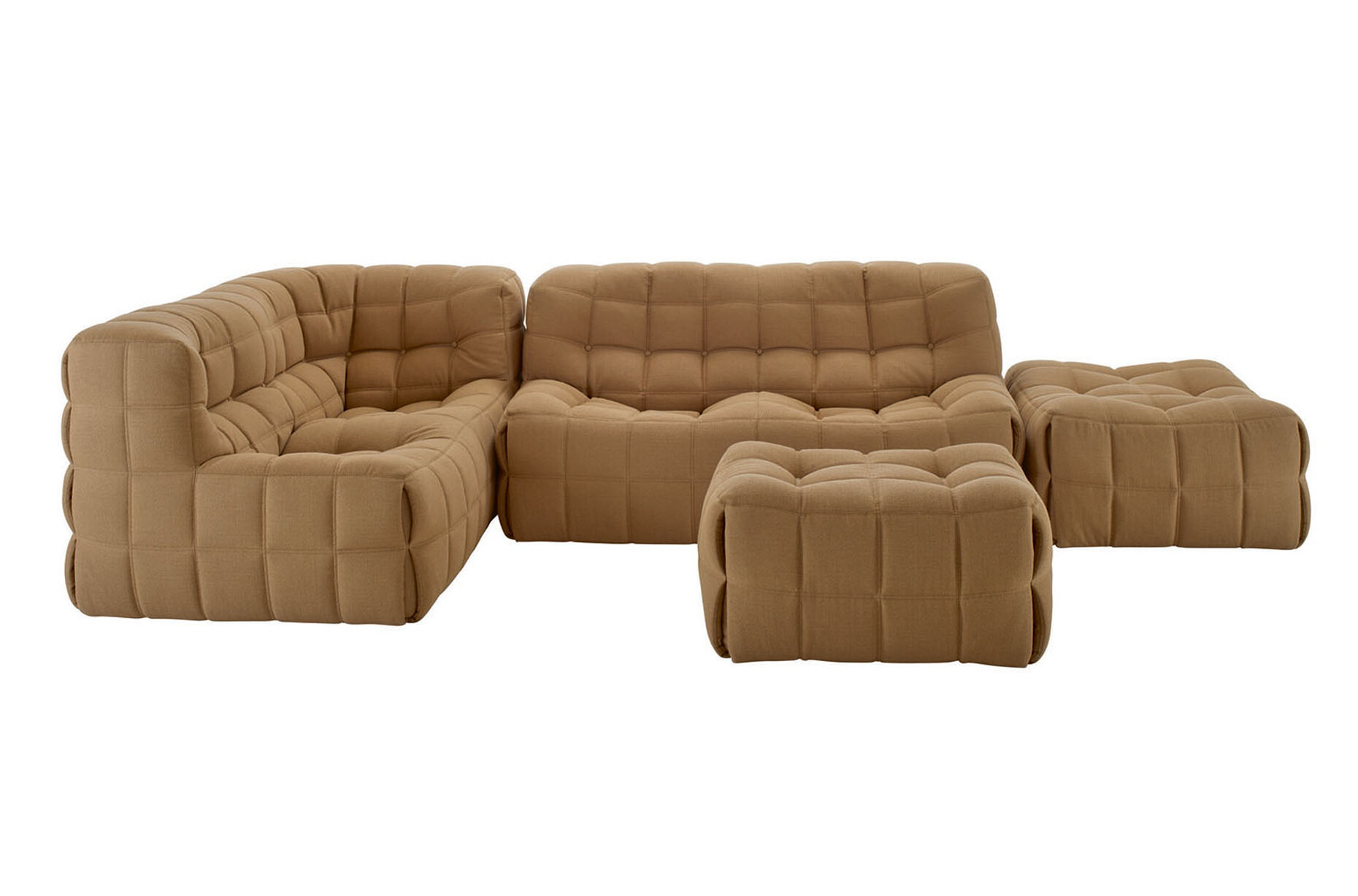 The seventies were decisive for the rise of Ligne Roset: a creative spirit of optimism was in the air, furniture designs became bold and experimental in contrast to the clear lines of the previously popular mid-century design. Expansive upholstery was in demand, as were warm colours and fresh ideas for designing with the new materials of the time. In this open atmosphere, Jean Roset, the grandson of the founder of Ligne Roset, decided to focus the family business not only on the successful contract business but also on furnishing living spaces. Together with designer Michel Ducaroy, he presented the ‘Togo’ sofa in 1973, which looks like an oversized seat cushion with an upright backrest and is still internationally popular today. This was followed shortly afterwards by the iconic ‘Kashima’ full-foam sofa, whose diamond-shaped quilting is reminiscent of the design of the ‘Chesterfield sofas’ and whose soft curves are a wonderful place to relax. Like a nest, ‘Kashima’ offers the seated person comfortable support, which is achieved by means of inner cords, supports, wedge cushions and the comfortable seat height of 38 centimetres.