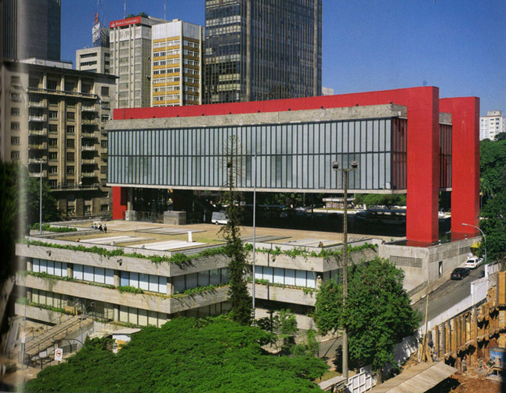 The two got to know Brazil as a young, aspiring and socialist state that offered them the distance from destroyed Europe they longed for. Together, the Bo Bardis first organised three large, successful exhibitions of European art. Pietro had travelled regularly to South America since 1933 and had good contacts with artists, politicians and architects. Then he met the media mogul Assis Chateaubriand. With him, he developed the idea of an important new museum for modern and classical art in São Paulo, the MASP (Museu de Arte de São Paulo). Chateaubriand was responsible for the finances and the necessary contacts, Pietro was in charge of putting a collection together and Lina was in charge of converting a plain office floor into a museum. This was to be the home of the new museum for the first few years, before funding came together for the spectacular new building that Lina Bo Bardi developed for the MASP from 1957 onwards: Located directly on the Avenida Paulista, one of the city's main arteries, she suspended a rectangular, almost completely glazed structure from two enormous reinforced concrete beams that rise like bridges above the building, allowing it to hover a good ten metres above the ground. This created a public square underneath, covered by the museum, where all kinds of events could take place. To further emphasise the dramatic nature of the gesture, Bo Bardi had the two concrete beams painted a bold red. When the museum was ceremoniously opened in 1968, it was a sensation – and it certainly still is today. Pietro Bardi remained director of the MASP until 1996, three years before his death.