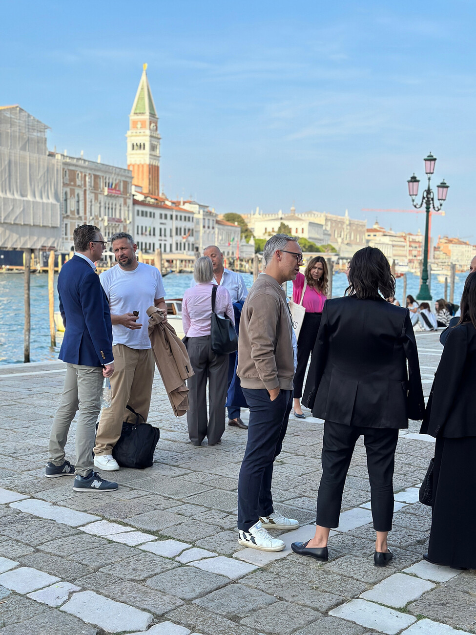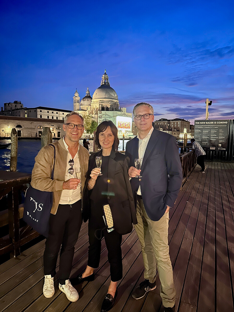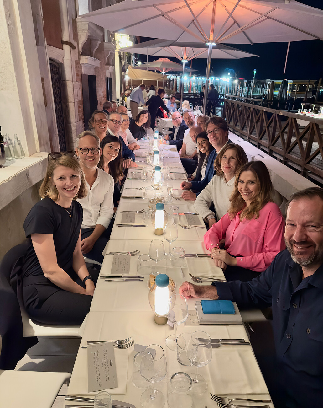 Personalities from the fields of lighting design, architecture, interior design, photography and journalism recently accepted the invitation of Lodes and Stylepark for a multifaceted programme in Venice: the programme kicked off with a guided tour of the Punta della Dogana, a former customs building that was converted into an art museum by architect Tadao Ando on behalf of patron and collector Francois Pinault. The fascinating interplay of light, architecture, space and art makes the Punta della Dogana a grandiose experience. From there, we walked across the Accademia Bridge to the other side of the Grand Canal to the "Ombra del Leone" restaurant, where Venetian delicacies were served at a festively laid table on a terrace directly on the water - set in the right light by luminaires from the Lodes collection.