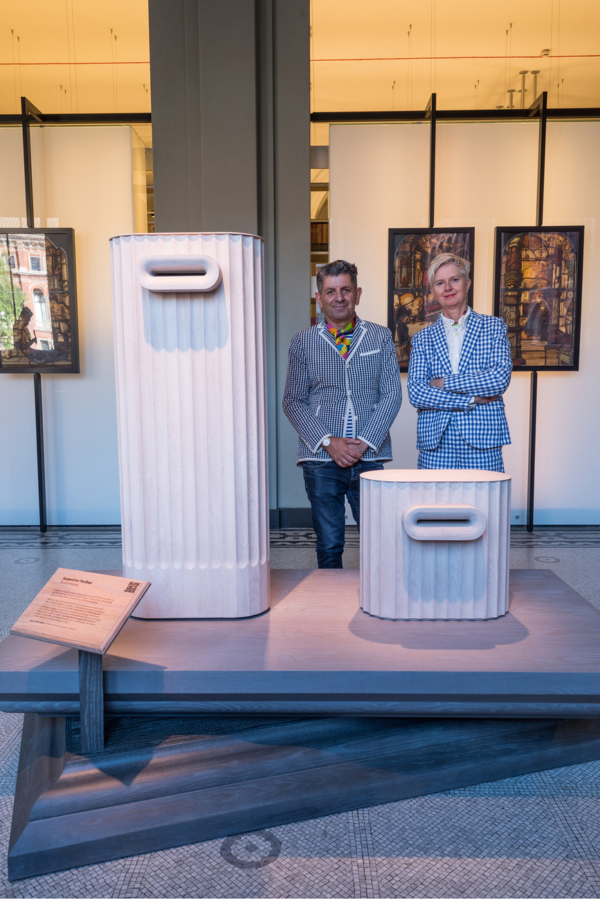 The most extensive project to be shown during the London Design Festival at the Victoria & Albert Museum is called “Legacy”. For this, the festival’s founder Sir John Sorrell brought together ten heads of great London cultural institutions and ten designers and design studios. The idea? The directors had to commission the designers to create an object they felt was lacking in their personal or professional lives and which they wanted to be shaped in a particular way. Both the commissions and results show great diversity and demonstrate how differently artists and clients approached the task. Alex Beard, Director of the Royal Opera House, had designer Terence Woodgate create two stunningly beautiful sofas for a meeting room, while V&A Director Tristram Hunt had Jasper Morrison design a small seating arrangement for his office – a task that Morrison completed masterfully relying on his unique formal vocabulary. Other commissions were somewhat more specific: Hans-Ulrich Obrist, Creative Director of the Serpentine Galleries, for example wanted Studiomama to design a letterbox for his institution. His motivation, he explained, was the desire to see his visitors rediscover the medium of the postcard, which played an important role in the works of many 20th-century artists. Studiomama turned this request into an object that appears a bit like an oval-shaped fluted pillar. The slot for the letters, meanwhile, looks like a mouth with wide lips, a play on the object’s purpose as an aid to communication.