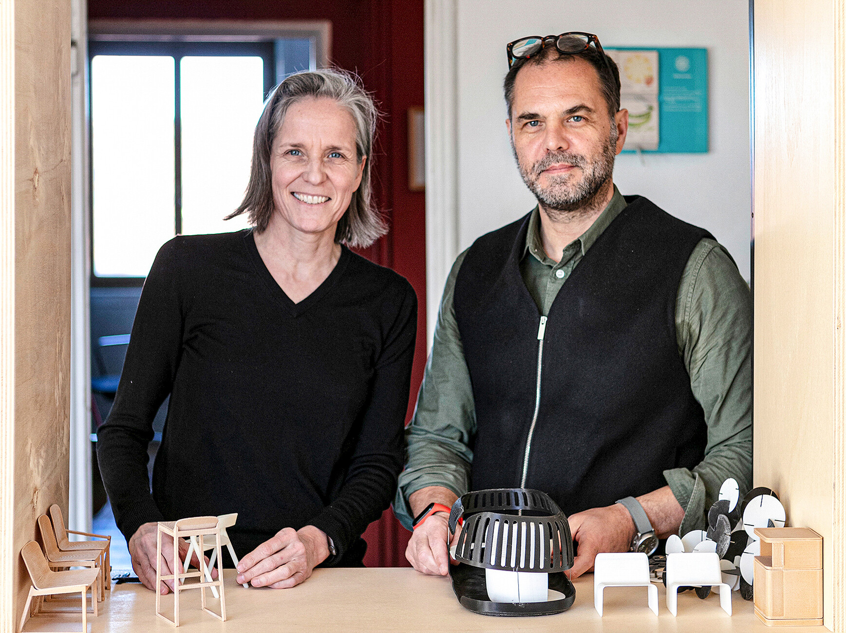 Two white A4 pages that each show a paperclip. At first glance they seem identical, until you realize that the open ends of one are fitted with tiny balls. It’s a detail that adds a special note to the linear design. “Essential” and “Essential plus” are the names given to these twin paperclips displayed on one of the walls in the Lorenz + Kaz studio in Milan. Finding that little bit extra is a key goal for industrial designers Catharina Lorenz and Steffen Kaz. Their products, predominantly chairs, are designed to be functional and boast an aesthetic you would immediately associate with Scandinavia, were it not for the playful element, the snappy yet practical little bit extra that gives the designs their unique character. A prime example is “KATO” for Artifax, the silent butler that can quickly be put in position to serve as a tray, clotheshorse or seat. Or “TRIA” for Colé, the seat of which consists of three assembled elements that allow for a straight or sideways sitting position. Dynamic lines in the design produce a look that is reminiscent of the impossible drawings of M.C. Escher. “The important thing is to distill the idea down to its essence and then breathe life into it,” says Steffen Kaz. The breakthrough for the pair came shortly after they made the leap and went freelance with “Aspetto” in 2002, an in-house production the design duo created for the talent show at imm cologne. Cut from a single sheet of aluminum and curved in a continuous line to create an aesthetic form, “Aspetto” offers a convenient place to sit. A small work surface and storage space under the seat complete the concept. “You can still make a big statement with a simple design,” comments Catharina Lorenz. Given today’s flexible work environments, this multifunctional waiting-room piece was well ahead of its time at the start of the millennium. Shortly after its launch, Lorenz + Kaz shifted “Aspetto” to the smallest stand at Orgatec that year. In spite of its minimal presentation in a booth barely seven square meters in size, the model attracted the attention of US manufacturer General Motors, which then granted the designers their biggest commission yet, ordering 4,000 items for the Cadillac Experience Corner.