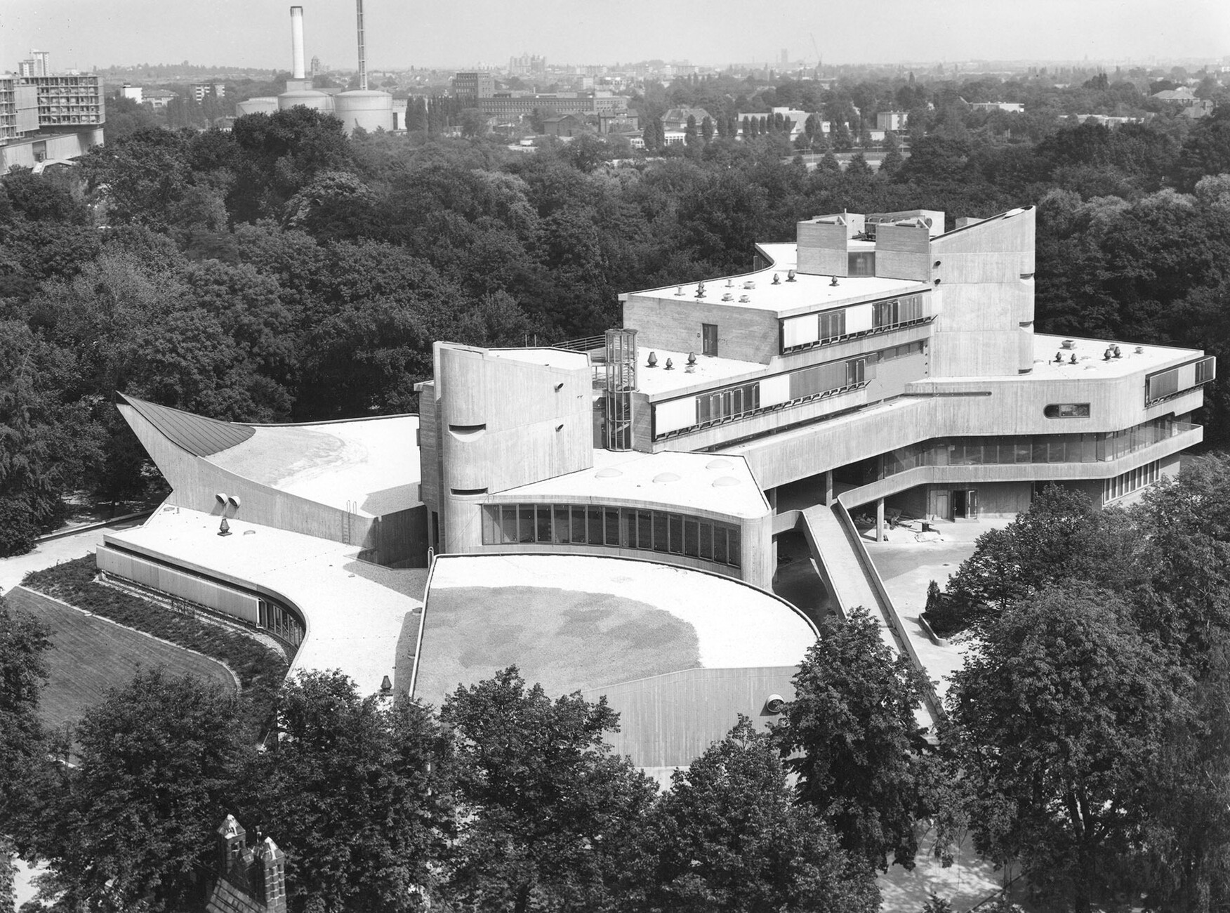 Both are threatened with demolition. They no longer meet today’s energy consumption standards and can no longer be used adequately in terms of their original spatial programming. We have a group initiated by art historian Felix Torkar and architect Gunnar Klack to thank for the fact that both are now heritage-listed edifices. On Jan. 20, 2021, Berlin’s Senate Administration for Culture and Europe issued the relevant press release. Even beforehand, both buildings were part of the “SOS Brutalism” exhibition that references structures erected in this style and that in part are or were acutely threatened with demolition. However, the fact that in Germany at present heritage listings are not worth more than the paper they are written on was recently proved, among others, by the Free Hanseatic City of Hamburg, where the “City Hof” high-rise ensemble built to plans by architect Rudolf Klophaus in 1958 was scandalously torn down despite having been entered in the Hamburg Heritage List. In other words, the entry of both the above Berlin buildings need not mean they have been saved once and for all.