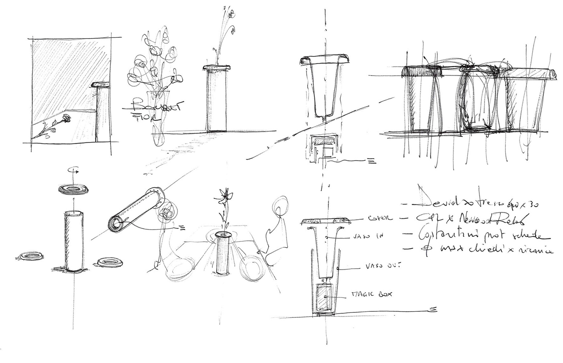 Alberto Brogliato: When we found the solution for the design of “Lost” we were actually in the middle of the process of developing a chair with Magis. When we showed Eugenio Perazza the prototype for the luminaire at the same time he said “Give me a week to think it over and talk about it with Alberto, Barbara and Enrico.” Two days later he called us and said: “Stop what you’re doing on the chair for a moment and continue with the luminaire.” It was the same for “Bouquet”, the combination of a vase and a rechargeable luminaire, Magis really quickly gave us the go-ahead on the project. They aren’t afraid of experimenting and taking a risk now and then.