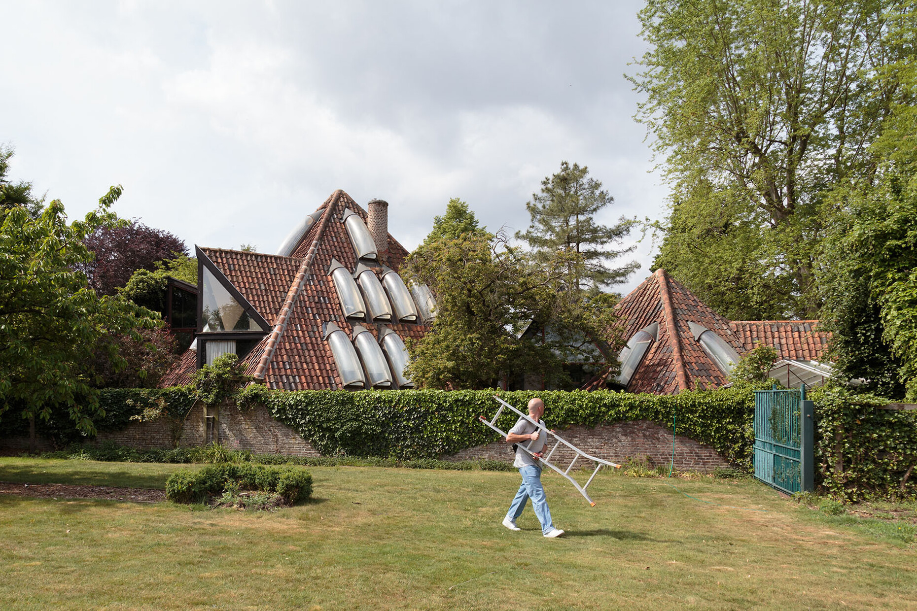 Yes, they really are! The skylights in the pyramid-shaped roof of this Belgian house don't just look like it, they are actually canopies that once covered the cockpits of Dutch fighter planes. And the monumental Gothic portico that now spans the driveway to another single-family house is not a kitschy fake from the local DIY store, but was salvaged during the demolition of a historic church. The ornate bay window, which does not match the architectural style or scale of a third Belgian house, was also taken from another building. Our eyes are now so accustomed to perfectly realistic Photoshop montages, that when we see such pictures we automatically ask ourselves whether they're real or whether we've succumbed to the work of a particularly clever computer artist. But no, in this case these buildings are real. And they're just three examples of the wondrous work of the exceptional Belgian architect and entrepreneur Marcel Raymaekers, whose pioneering achievements in the radical recycling of architecture are only just being discovered.