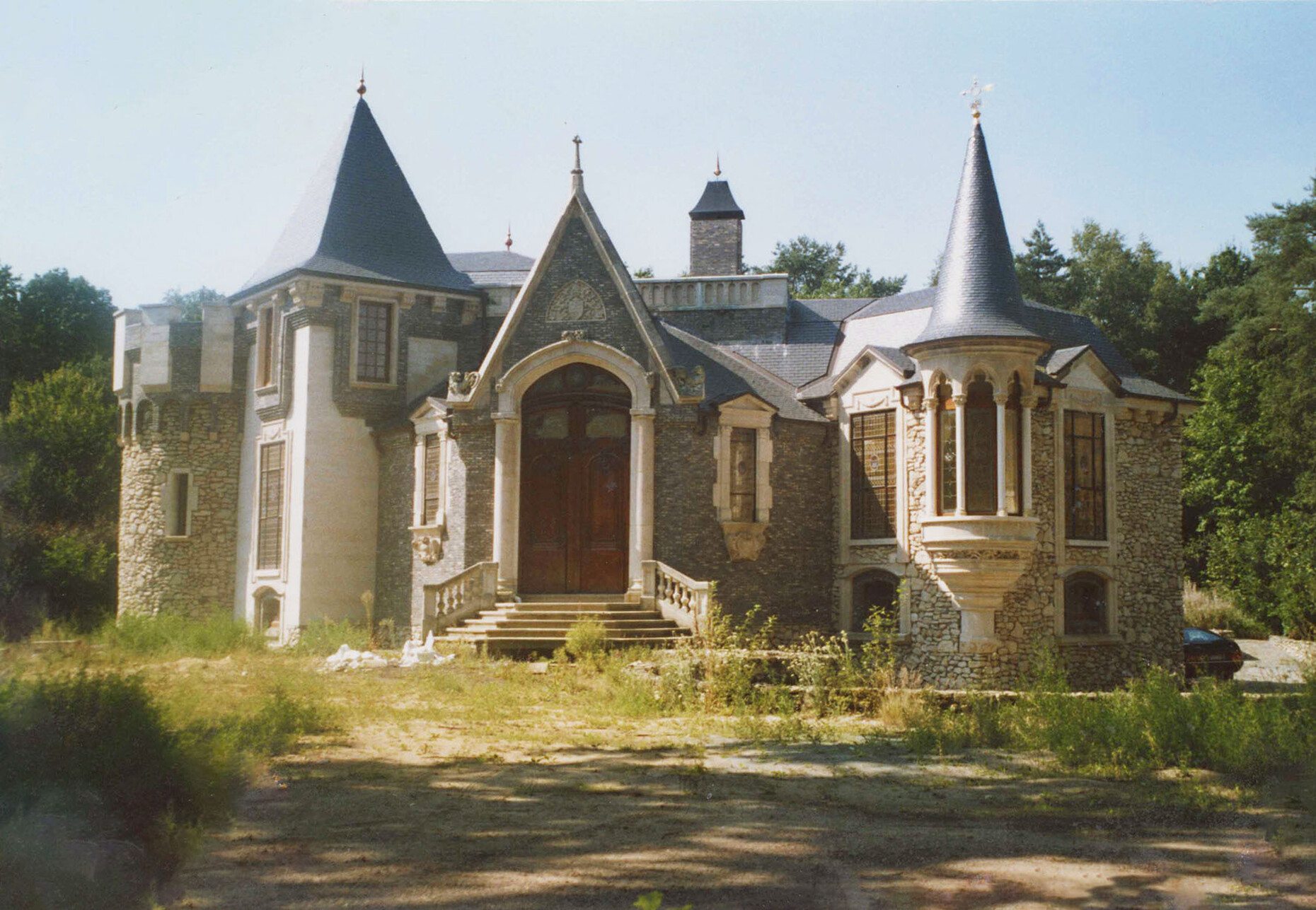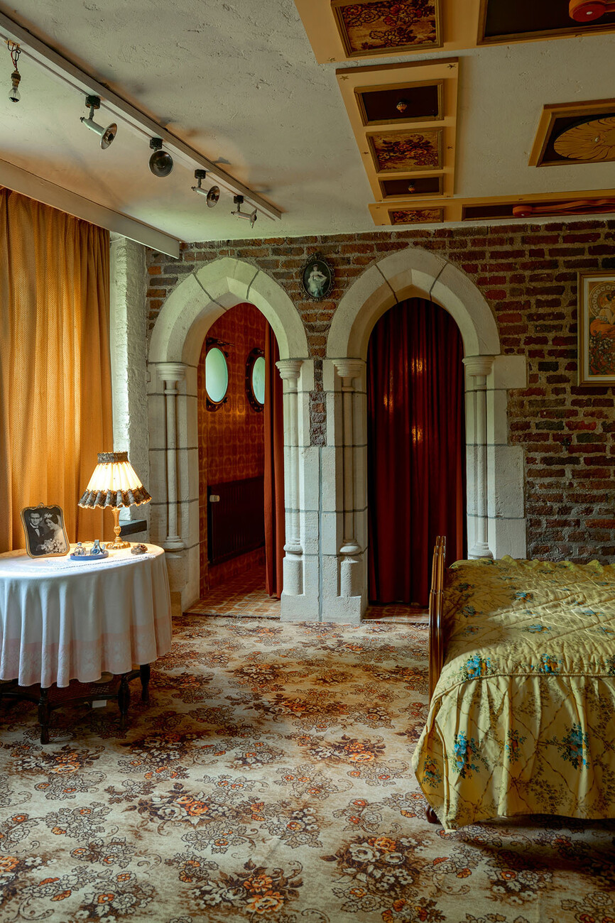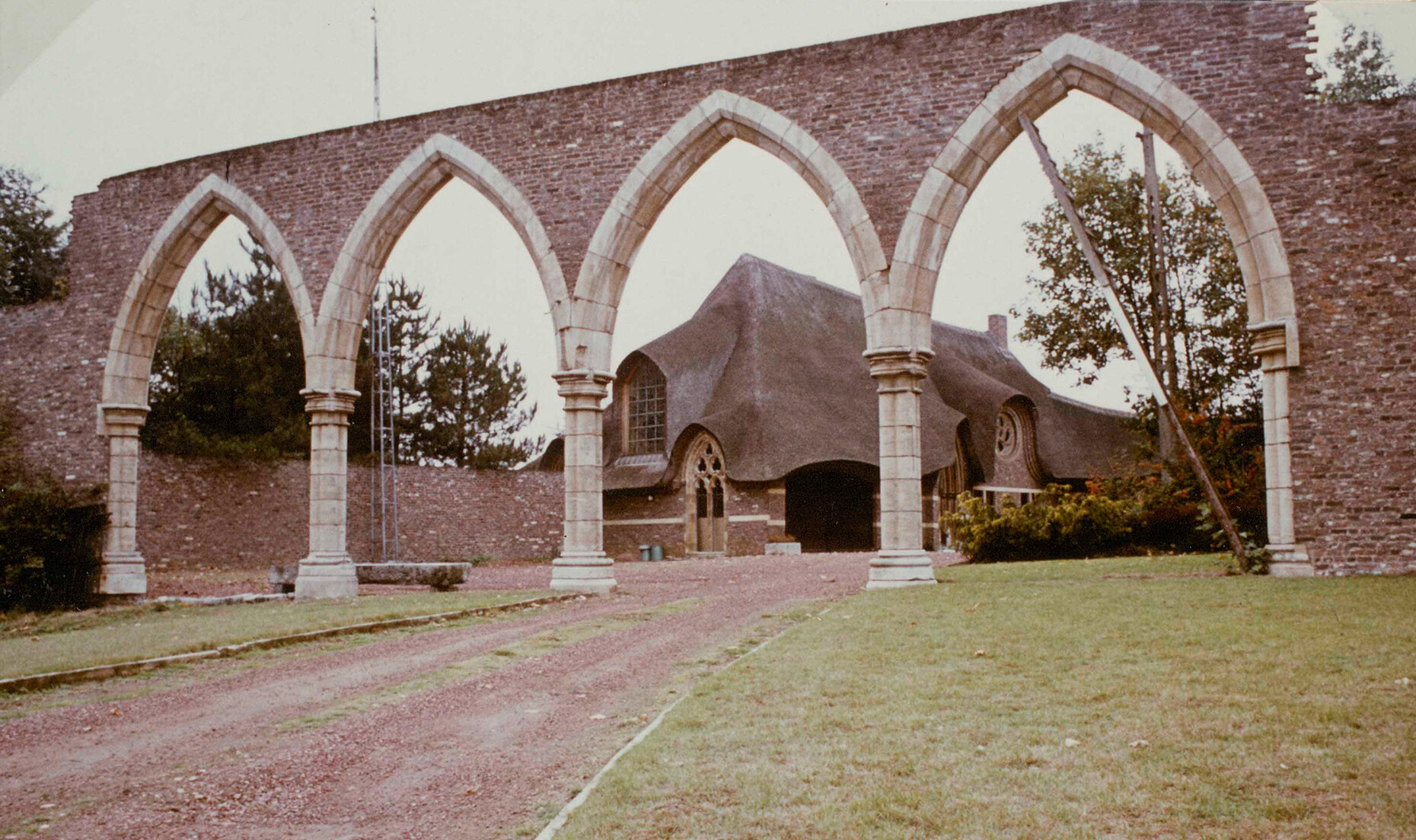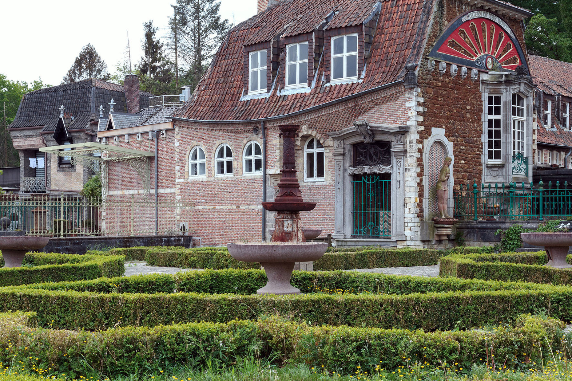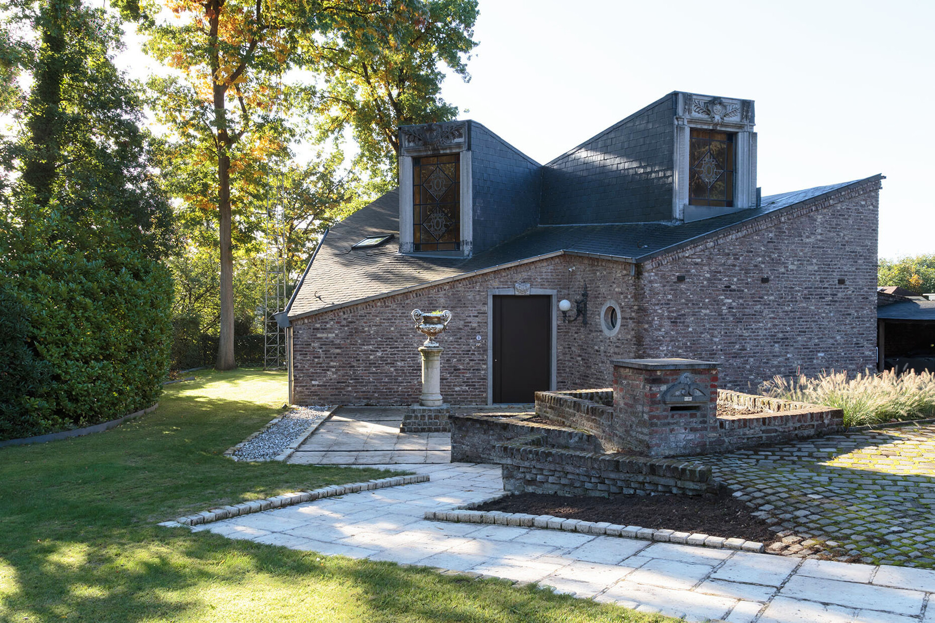 With time, he slowly became more courageous, and his building approach changed greatly. In a lorry, he and his friends drove around the country in search of demolition materials, which they then put in the vehicle and took with them. They got a great deal of it for free, as the demolition companies were happy to be rid of the stuff. Raymaekers collected the materials they found at an abandoned farm near Diepenbeek. This is also where he took his customers there to show them wood, natural stone slabs and windows from the Belle Epoque, as well as Gothic, neo-Gothic and Baroque archways and statues he'd gotten from demolished churches. He eloquently encouraged visitors to have such spoils installed in the homes they were planning as special luxury items.