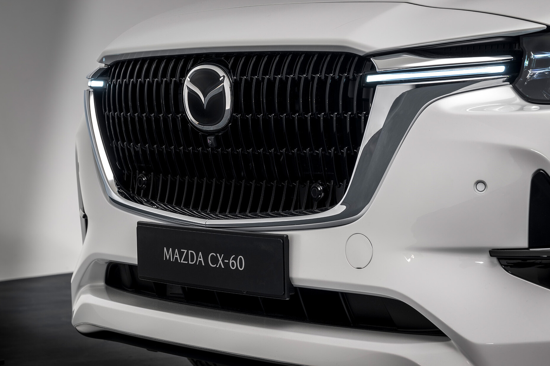 The brief for the design of the CX-60 was “noble toughness” – as the intention was to create an elegant yet sporty SUV. This involved melding the ideas of the designers and modelers, spelling “a combination of all the experience that exists in the company,” as Andreas Feussner, Head of Clay Modeling at Mazda Europe, puts it. The technical specifications did not play a decisive role in the first creative brainstorms, because “you can’t limit yourself too much at the start, otherwise your creativity freezes up,” says Feussner. And creativity is especially important at the beginning of the design process, because in precisely this first phase the designers and modelers lend the car its special expression. At Mazda this is done entirely in the spirit of the “Kodo” design language which is for its part based on the aesthetics of natural movement in a still object. And it doesn’t require any grand gestures – the design is reduced to the essentials. It is the subtleties that make the CX-60 special – such as the new, more slender design of the lamps, for which the elements were stacked on top of each other instead of next to one another. Moreover, thanks to a negative curvature, the side surfaces do not reflect light evenly, thus giving the car a dynamism that appeals to the eye. At the same time, the new “Rhodium White” exterior color boasts a dense particle structure that in contrast with a white pearl finish impresses with gloss and depth.