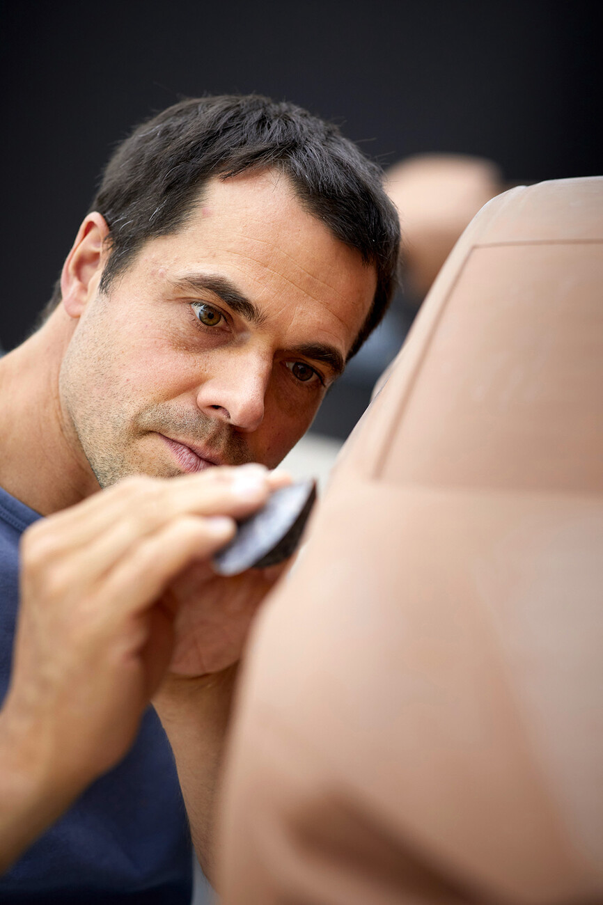 Every line of Mazda's new CX-60 is positioned with great deliberation. Elaborately worked out in advance in a clay model that is sometimes as large as the final car itself. This precision in clay modeling requires decades of practice, and indeed any modeler who wants to hold the master title of “Takumi” needs a good 20 years of professional experience in modeling vehicle molds. In this case, the “clay” consists of a mixture of wax, oil, fillers and pigment which is applied to a substrate and then molded. “The modelers infuse their emotions into the mold,” comments Jo Stenuit, Design Director at Mazda Europe. And this is crucial for the success of the final design, because “if a car has been created solely using digital means and the human factor is missing, then you can sense the omission subconsciously, too” says Stenuit. Using a sculptural approach and relying on sketches, the modelers rely on spring-steel tools to fashion a three-dimensional shape that can be flexibly altered. In other words, the design is in a state of constant flux. A sustainable way of working in many respects as no material is wasted in the case of clay modeling – every layer that is removed can be reused for the next mold.