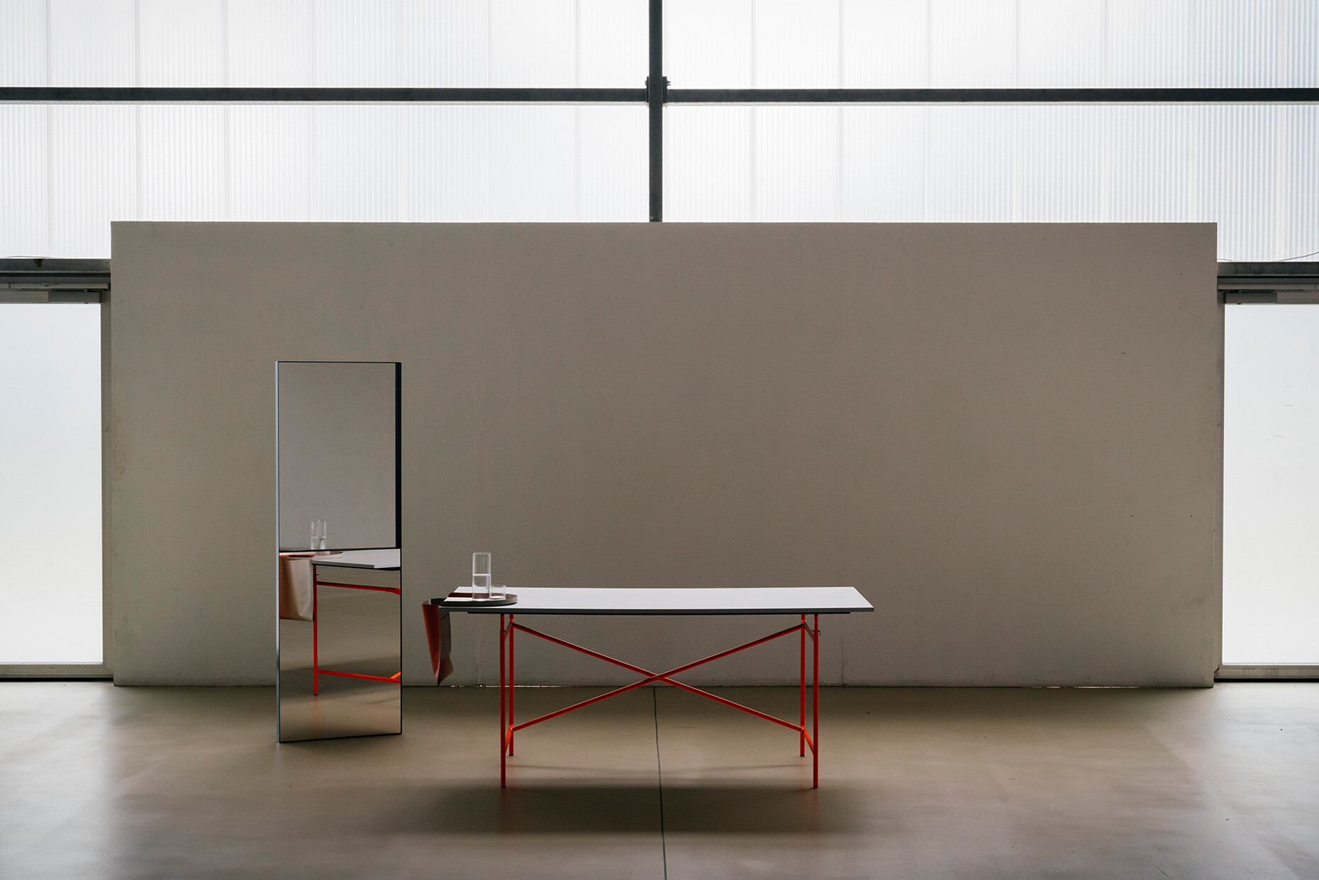 Richard Lampert will equip the legendary "Eiermann" Tables 1 and 2 with new colours and materials: On the one hand with table tops made from textile remnants from the Kvadrat Really collection, and on the other with solid wood tops created in cooperation with Janua / Edition Stefan Knopp. The sculptural "E10" rattan armchair and matching "E14" stool, originally designed by Egon Eiermann in 1949 and 1957, will also be presented in a colour variation. The "Salto" and "OneTwo" products are completely new: a casual piece of paper furniture for the office by Tilla Goldberg (Ippolito Fleitz Group) and a split mirror with a minimalist metal frame by Steffen Kehrle, which plays with space and reflection.