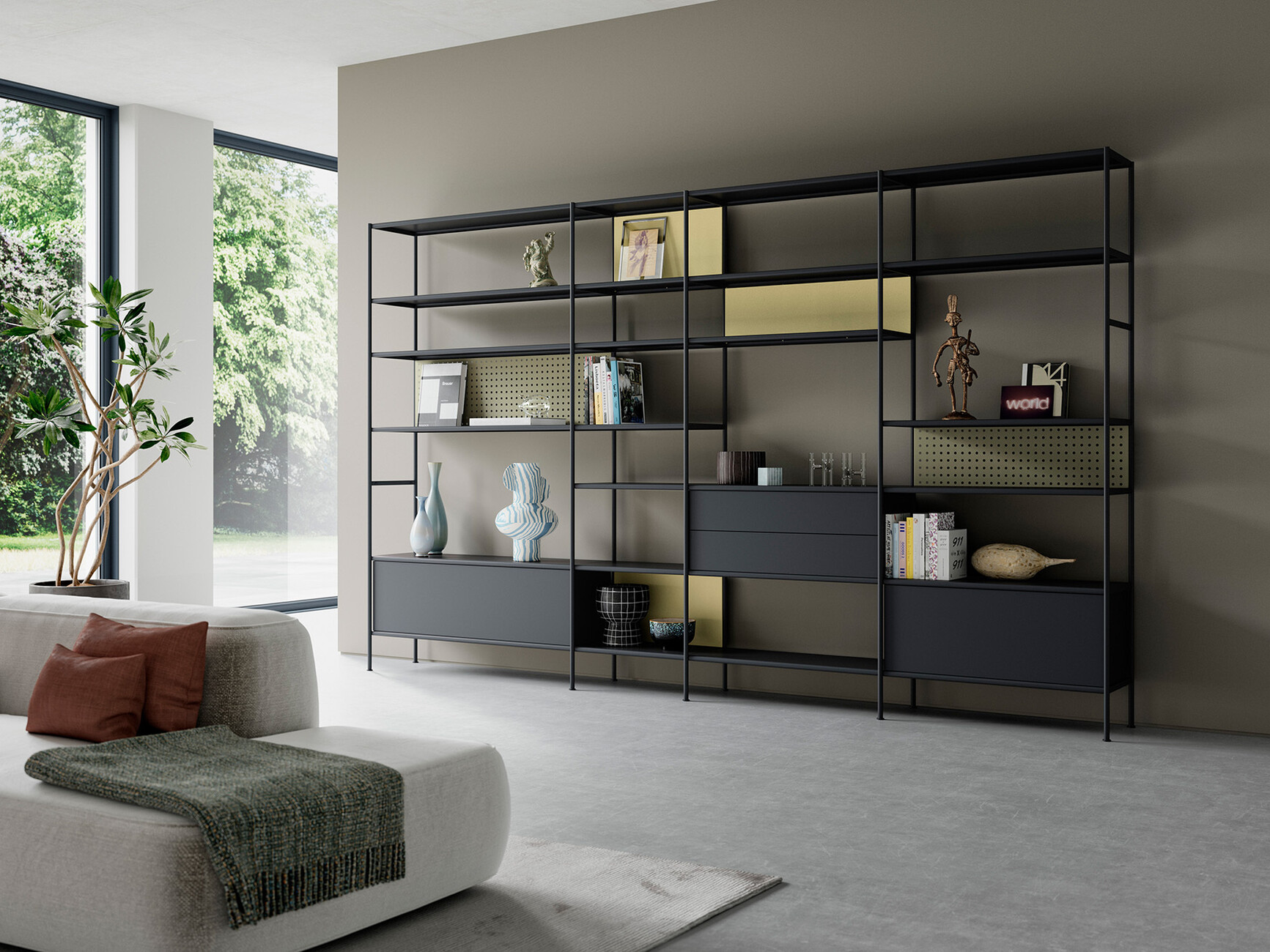 For over 25 years, Müller Möbel has combined a fascination for modern furniture design and the material metal. Successful highlights such as the "New Classic Line" and the "PS 20" secretary are shown with the new "Match" shelving and wardrobe system. This can be flexibly customised and creates structure and order. Whether on the wall or free-standing in the room as a room divider, "Match" can be individually equipped with cabinets or drawers, clothes rails, hooks and storage boxes – in all RAL colours. The high standards of the company's own product are evident in every piece of furniture manufactured in the Augsburg factory.