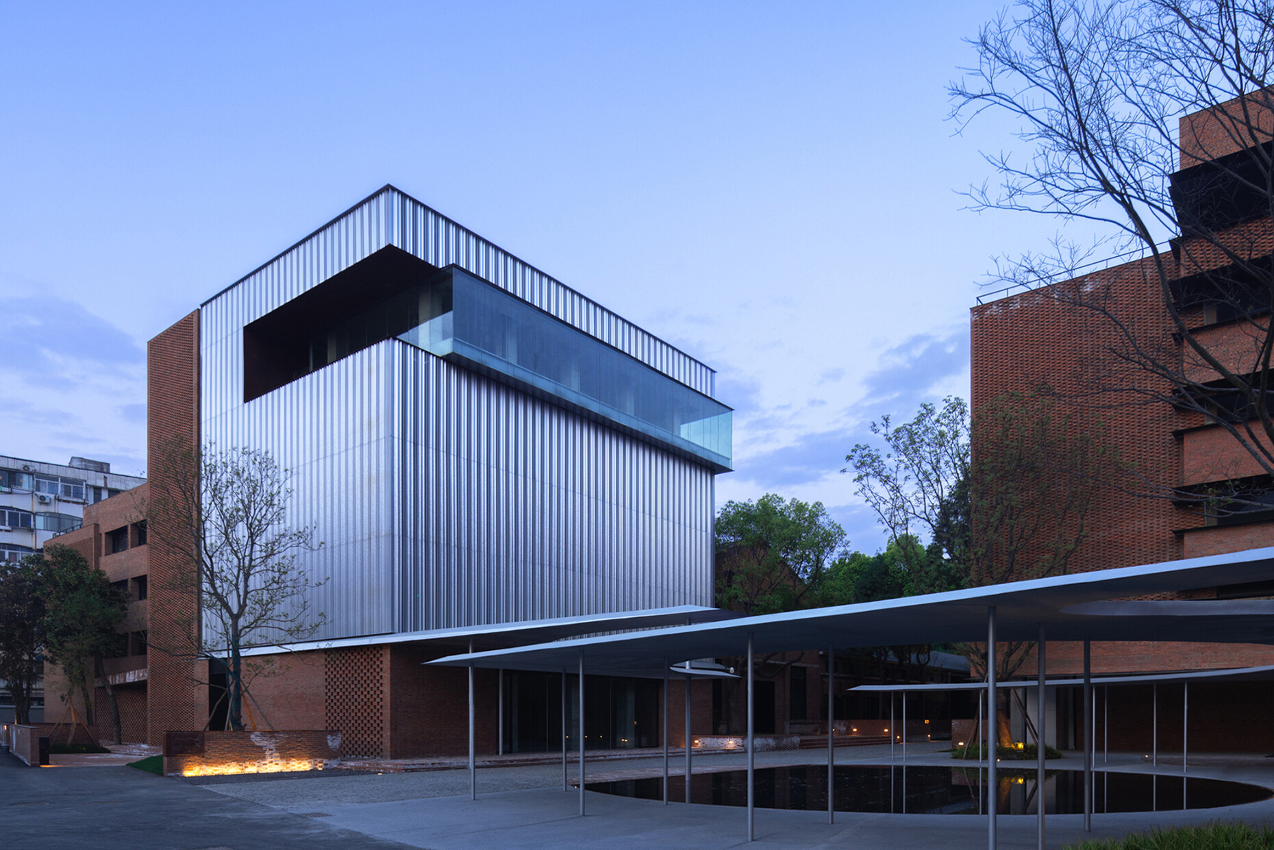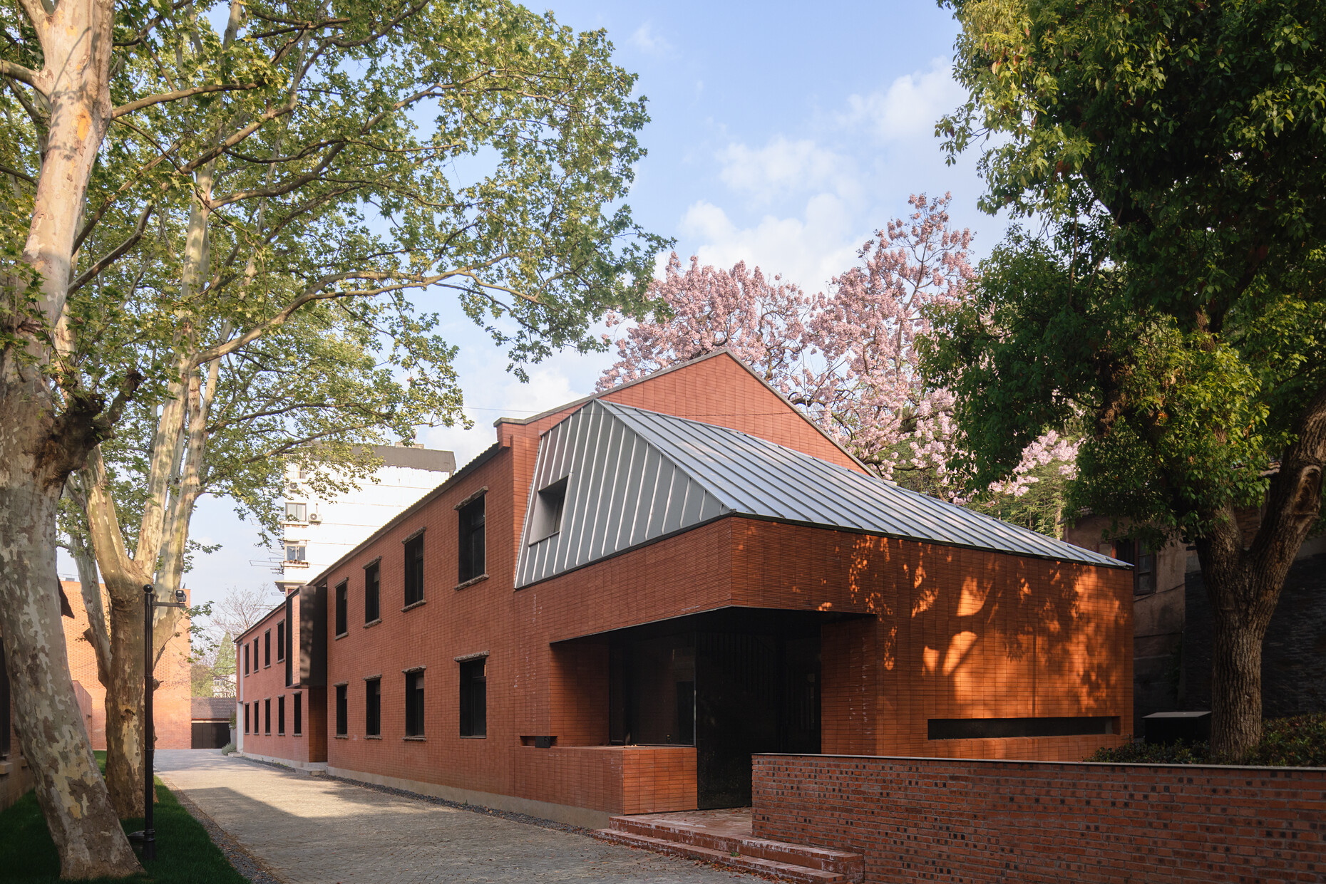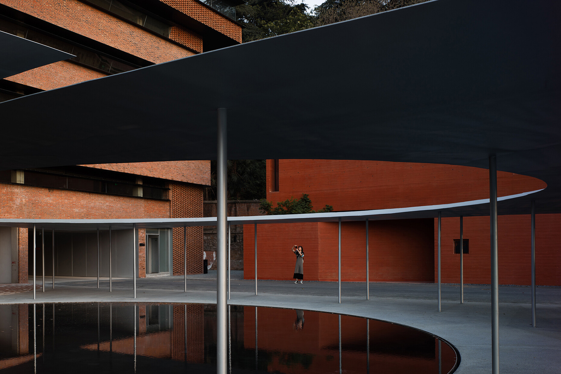 Mix Architecture is now also implementing projects in urban areas. In their home city of Nanjing, for example, they transformed a 1950s machine factory into a commercial area known as Hongchuang Park. The new use is spread across four existing buildings with up to six storeys. These were supplemented with new façades and extensions. Ornamental brickwork now blends in with the clinker walls of the existing façades. Reddish concrete, terrazzo, light-coloured sheet metal cladding and Corten steel have also been added. Part of the ensemble is a central square with a water basin, framed by a filigree, organic canopy. This showcases the industrial heritage, but also adds a new layer of time that oscillates between robustness and decorative elegance.