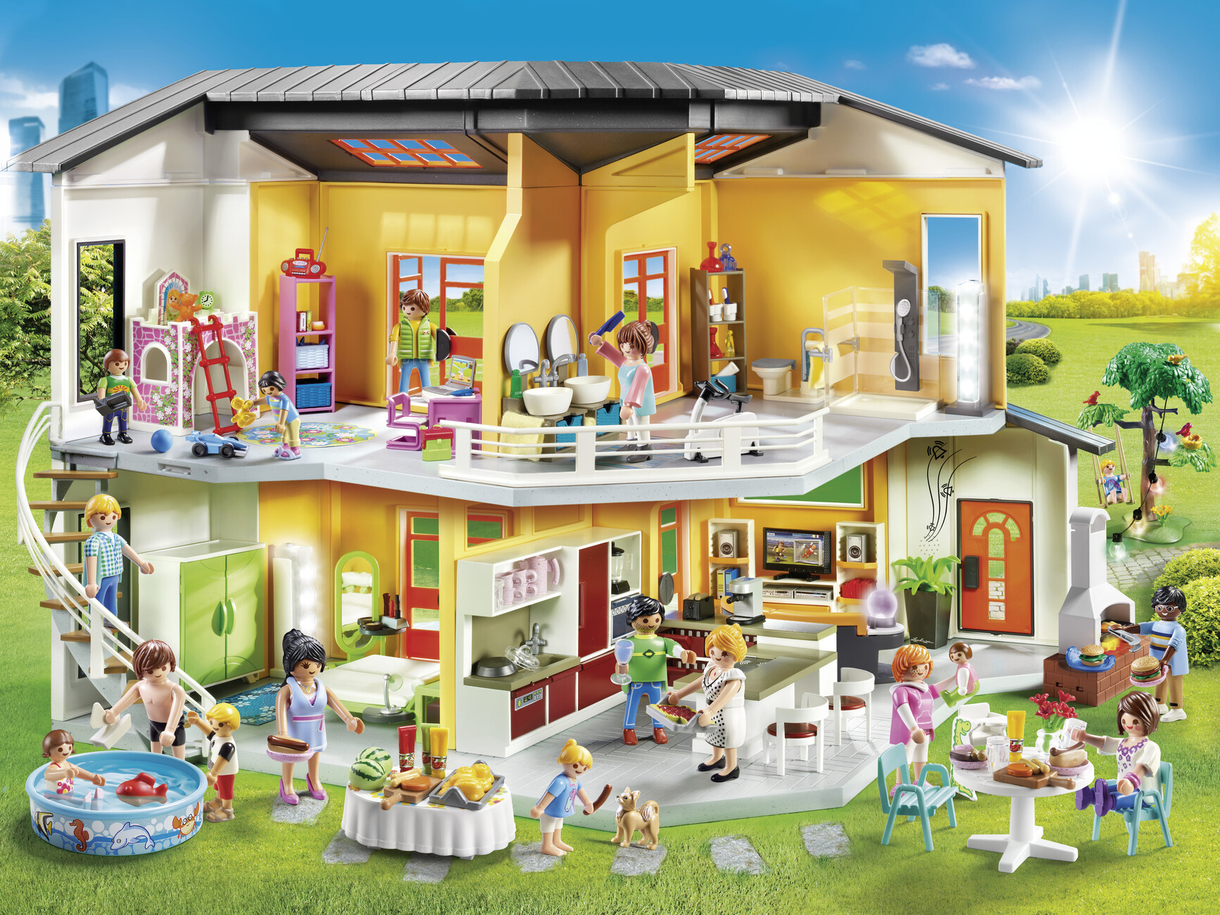 It’s not surprising that children want to see their everyday lives realistically depicted in toys. After all, they know only that, and they understandably are not sentimental as regards the old. To this extent it is only logical that Playmobil tries with its new toy house to approximate the everyday lives of its small users as closely as possible. The no-frills archetypal chair, table and bed that were once on offer have long since been discarded. Each item of furniture for the new toy house seems to have been created by a designer. There’s no getting round the fact that the toy house has been outfitted with the will to be tasteful: The parent’s bed has elegantly curved legs, the dining chairs with a design based on cylinder-like volumes seem to come from the latest international furniture fair, and in the bathroom there are of course contemporary washstand washbasins. The house is in fact a fairly perfect representation of present design. Anyone who wishes in 50 years’ time to ask what a well-heeled middle class interior looked like in the second decade of the century (or at least how such a stratum wanted to live), can find the answers here. And this makes the toy house so perfect for kids, as they only know the present. Is it the right approach to take pedagogically? Or does it direct taste only in one direction?
